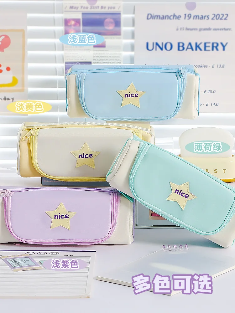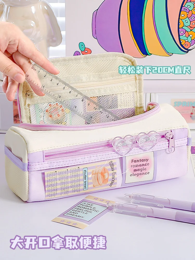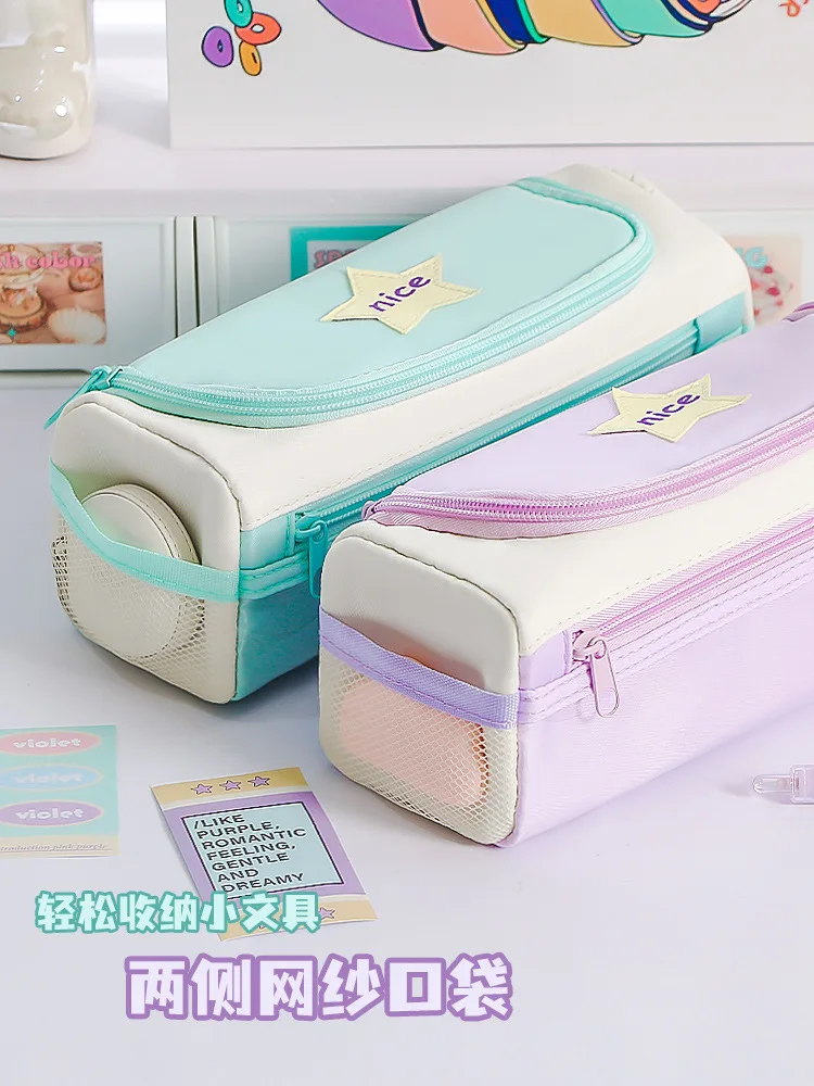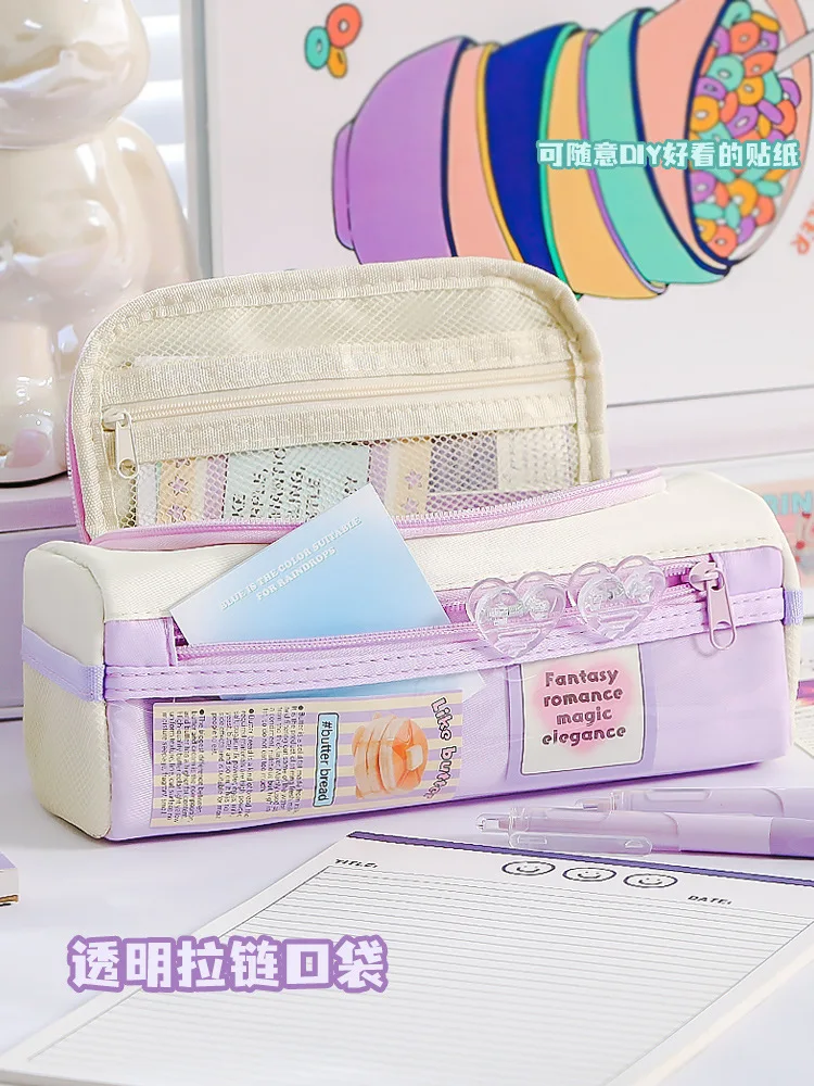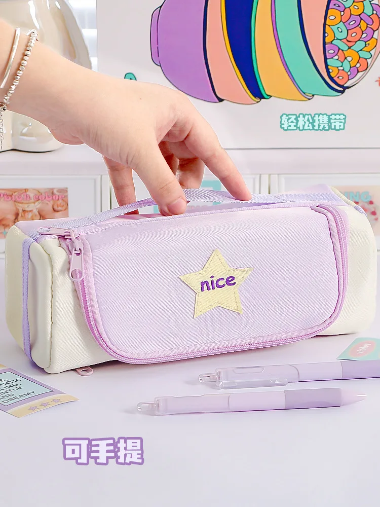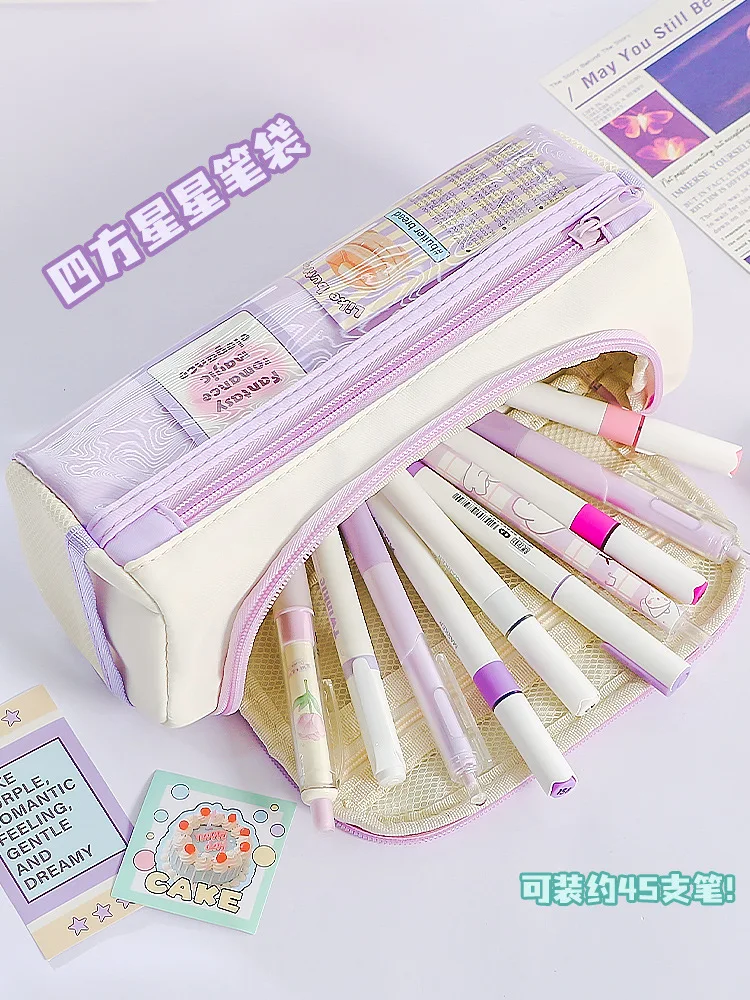 Estuche de lápices transparente para estudiantes, papelería de gran capacidad, estuche de lápices de mano, bolsa de papelería multifuncional