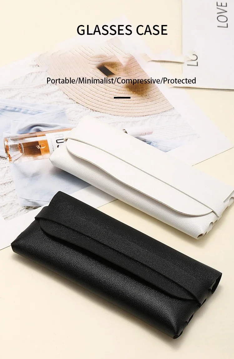 Estuches para gafas de cuero suave y elegante en blanco y negro - Bolsas protectoras para gafas, accesorios de viaje para hombres y mujeres - Elegante