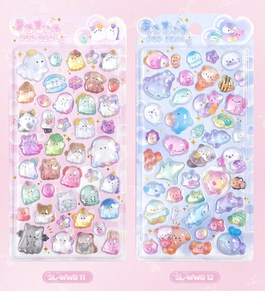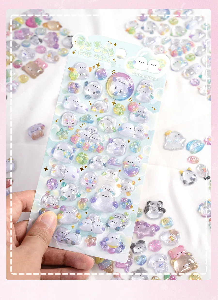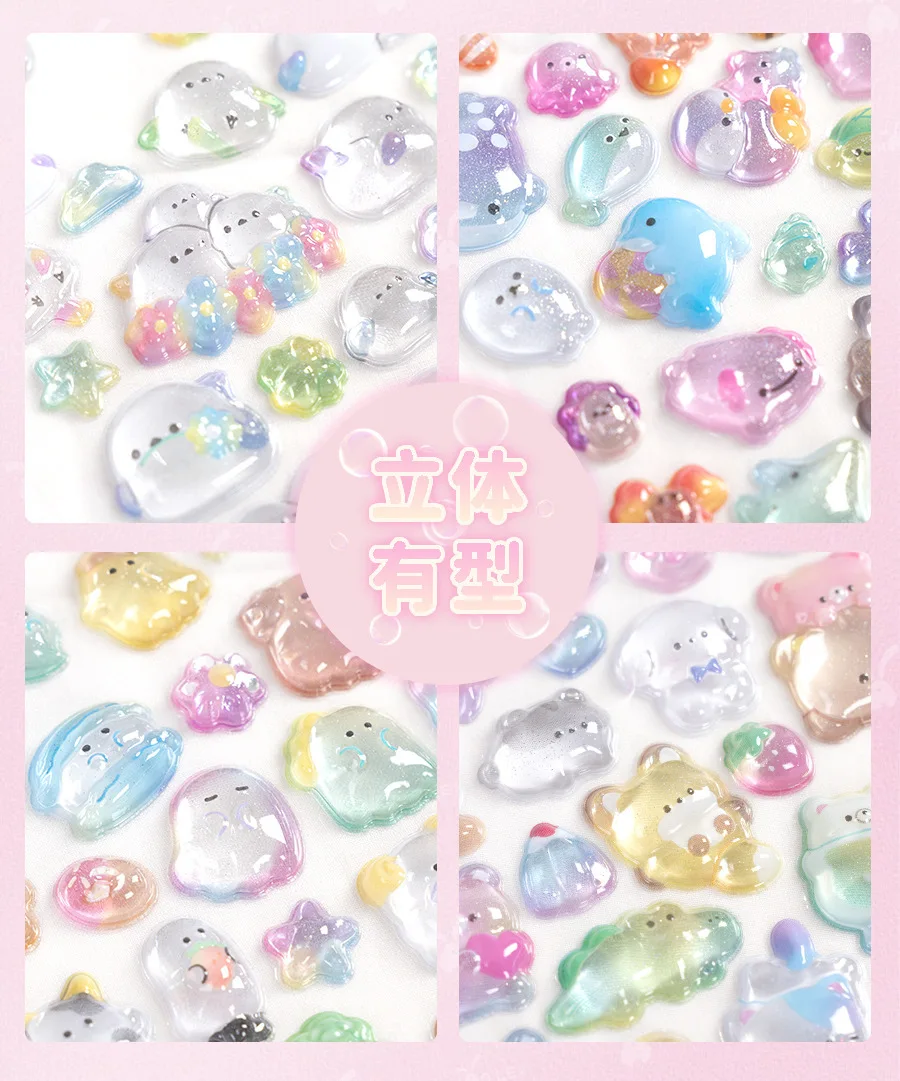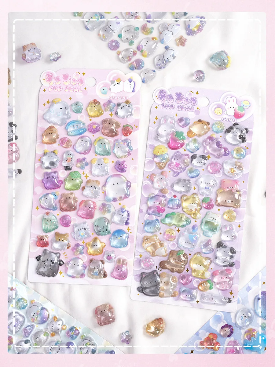 Estudiante Kawaii 3D relieve álbum de recortes pegatina gelatina dibujos animados Animal fantasma diario pegatina DIY decoración Kpop papelería pegatina