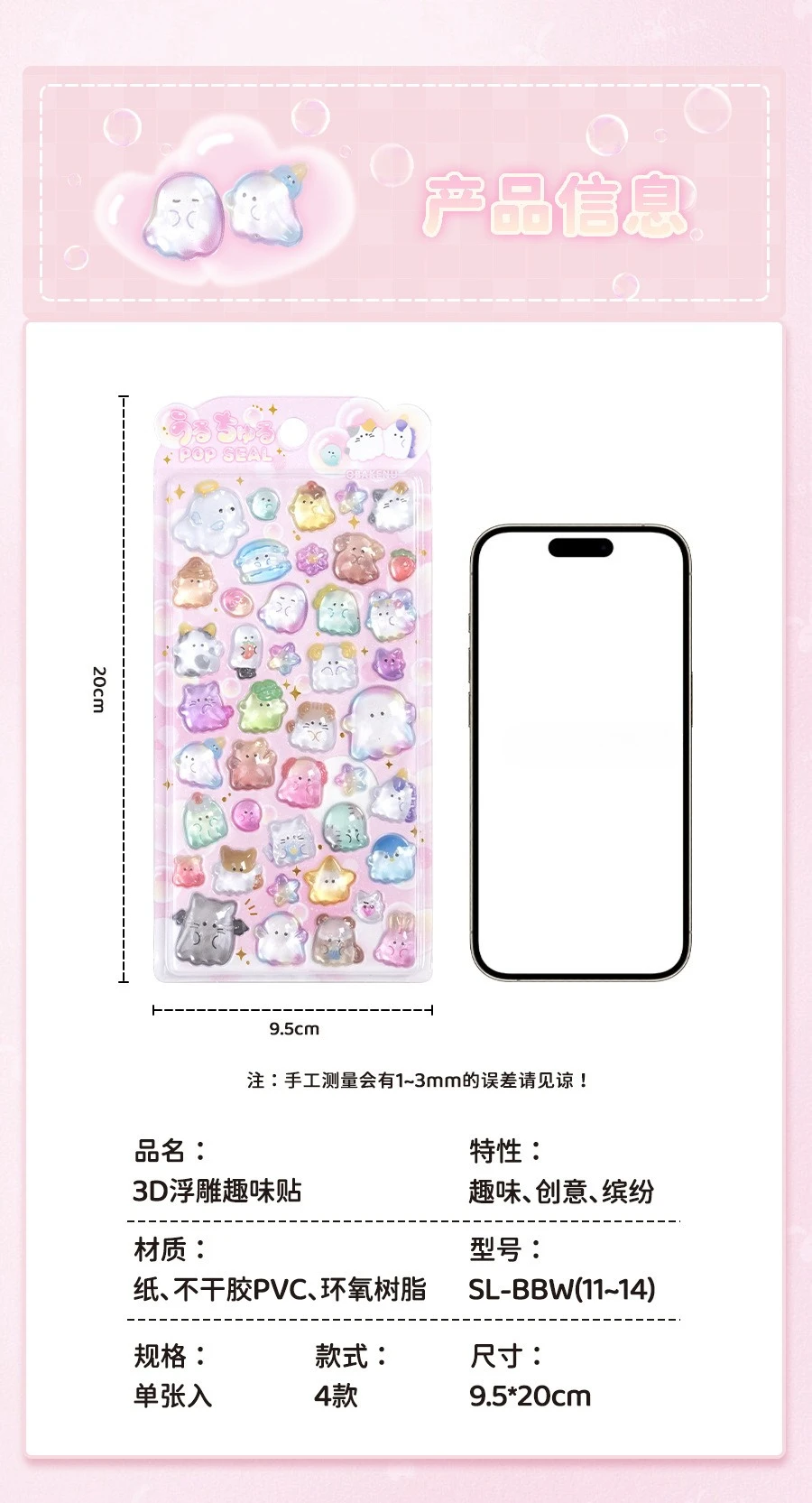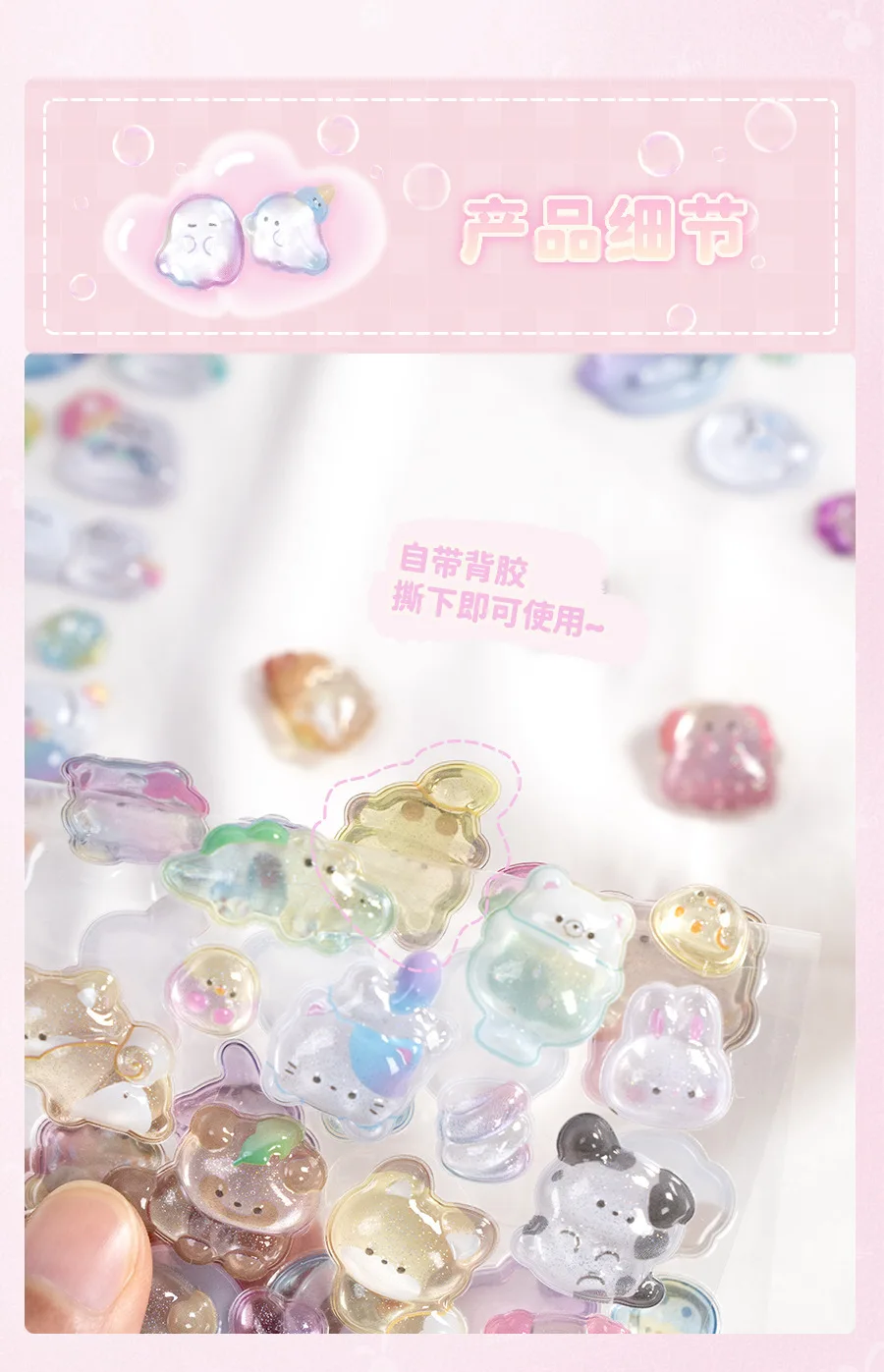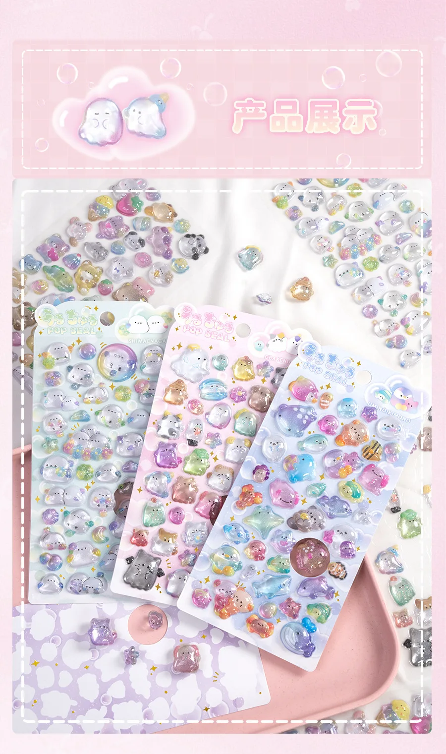 Estudiante Kawaii 3D relieve álbum de recortes pegatina gelatina dibujos animados Animal fantasma diario pegatina DIY decoración Kpop papelería pegatina