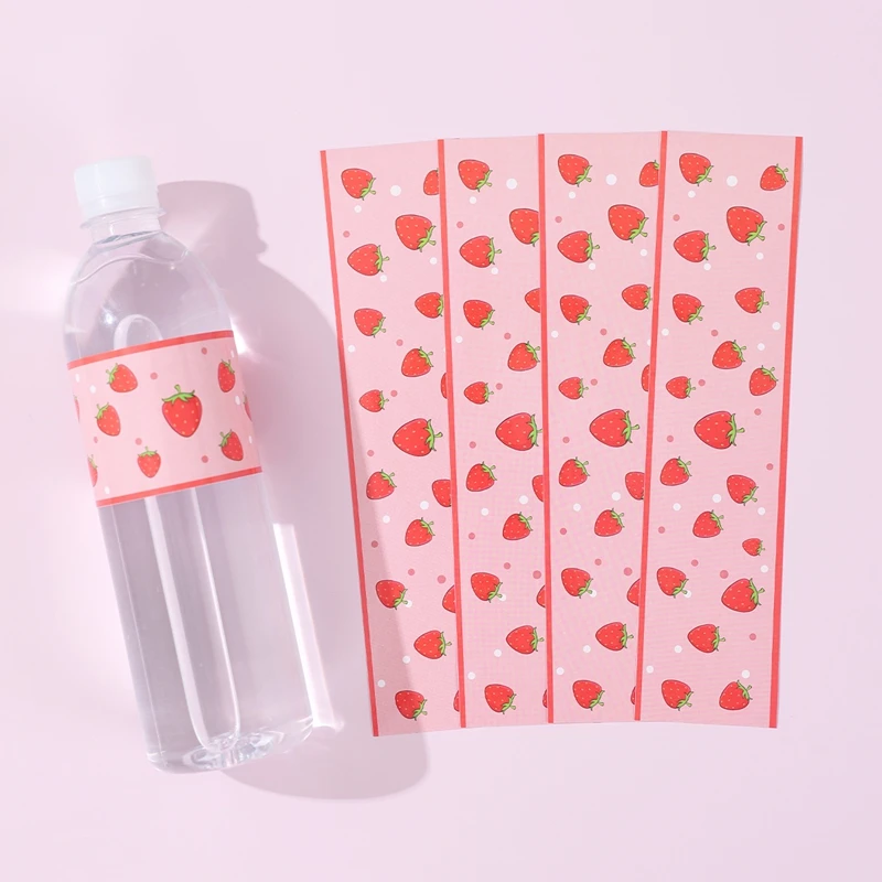 Etiquetas adhesivas para botellas de fresa rosa, pegatinas con tema de fresa para niños, 1er cumpleaños, Baby shower, suministros para fiestas de verano, 10/24 Uds.