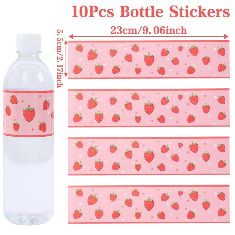 Comprar Etiquetas adhesivas para botellas de fresa rosa, pegatinas con tema de fresa para niños, 1er cumpleaños, Baby shower, suministros para fiestas de verano, 10/24 Uds.
