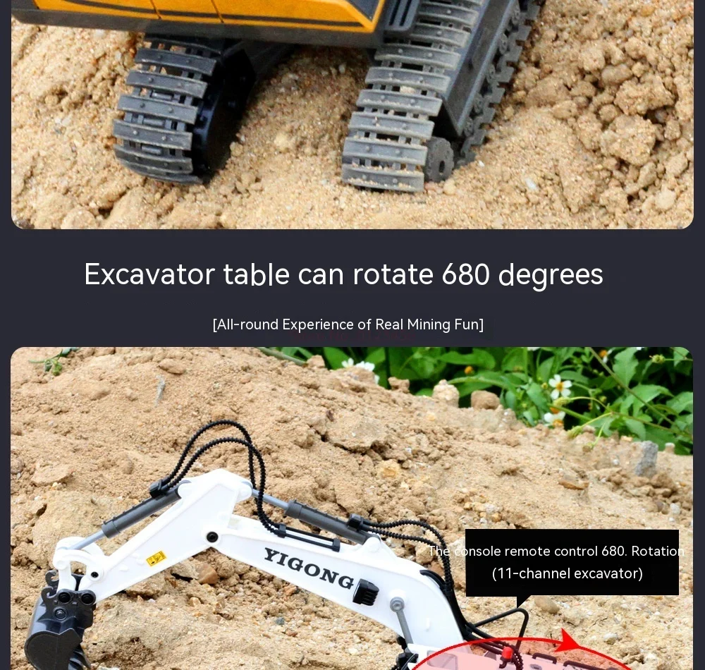 Comprar Excavadora de aleación a Control remoto para niños, Tractor de 11 canales con sonido Led, recargable por USB, regalo, 1/20