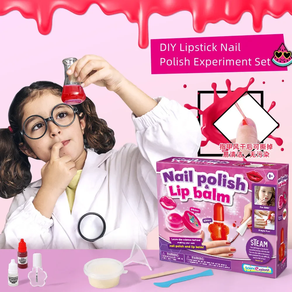 Comprar Experimento científico DIY, lápiz labial hecho a mano, conjunto de experimentos de esmalte de uñas, juguete de maquillaje para niña, juguete de aprendizaje, juego de juguetes educativos