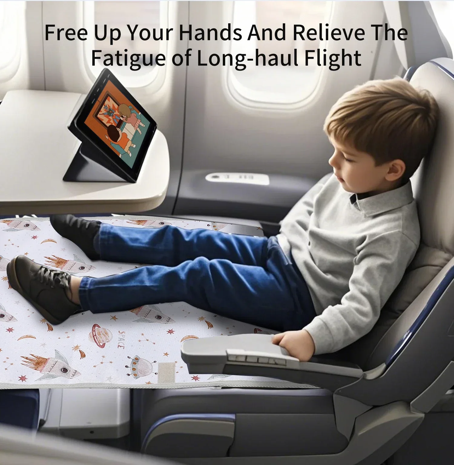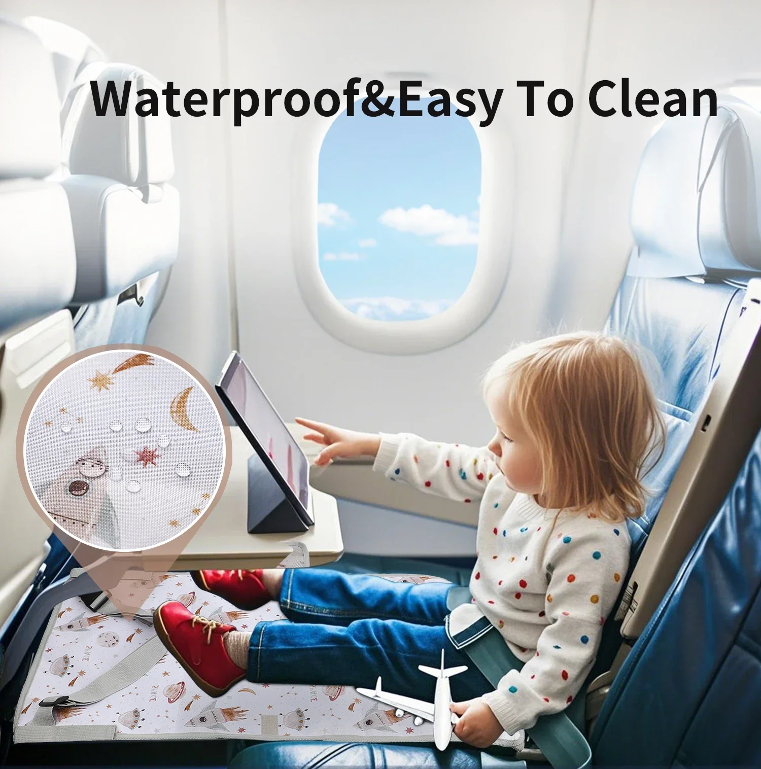 Extensión de asiento de avión para niños, almohadilla ajustable, fácil de limpiar, hamaca de viaje para niños, cama, extensor de asiento de avión impermeable, dibujos animados