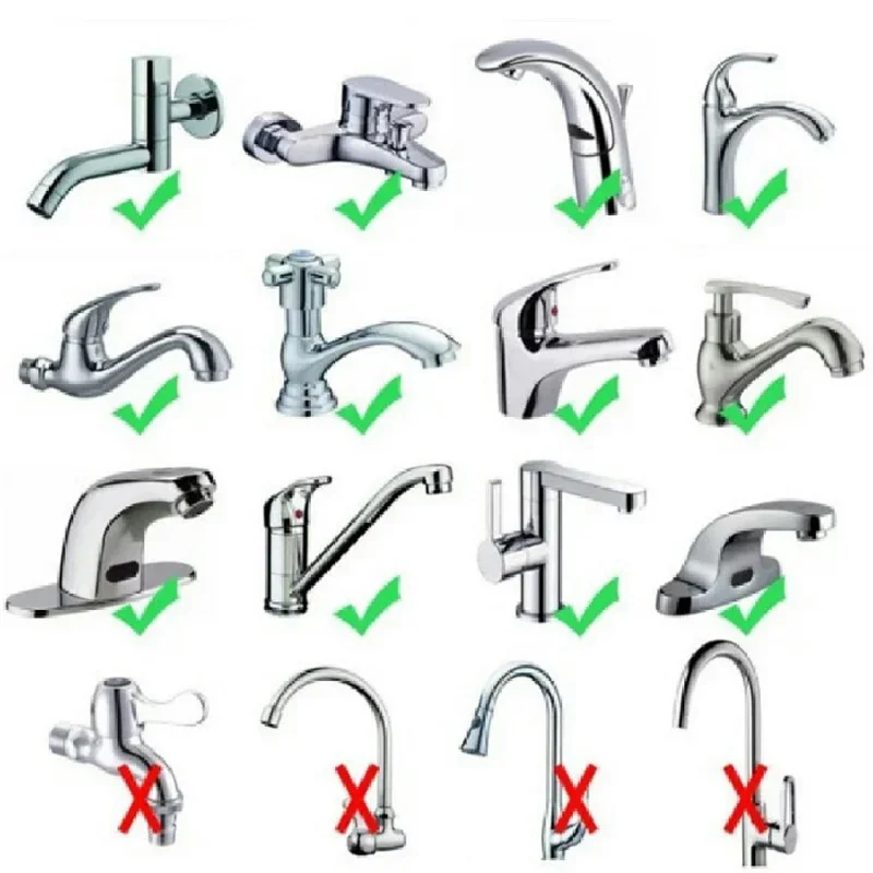 La cara de nuestra lavadora de manos tiene un diámetro de 3,2 cm, se puede configurar con un grifo de 2,5-4cm de diámetro, no es aplicable un grifo demasiado pequeño o un grifo vertical hacia abajo. Para evitar que la recompra no se pueda utilizar, mida el diámetro de la salida 。