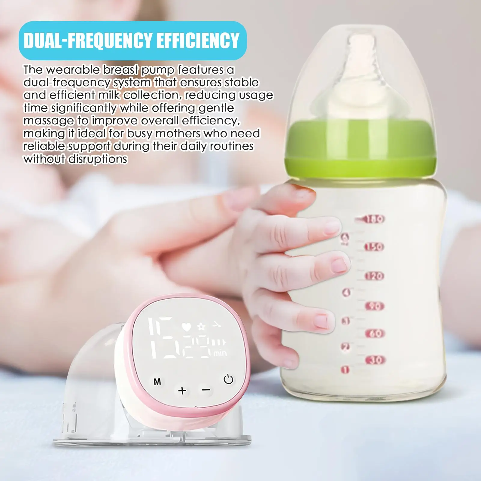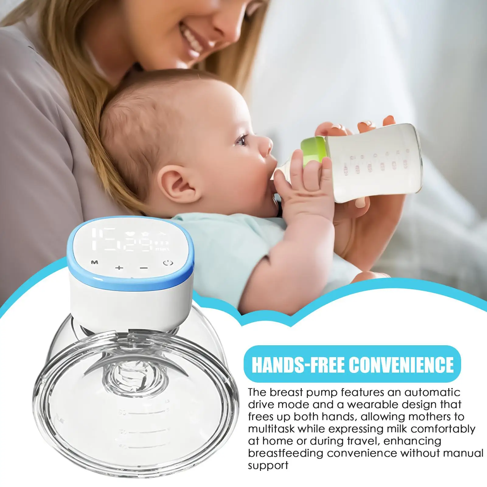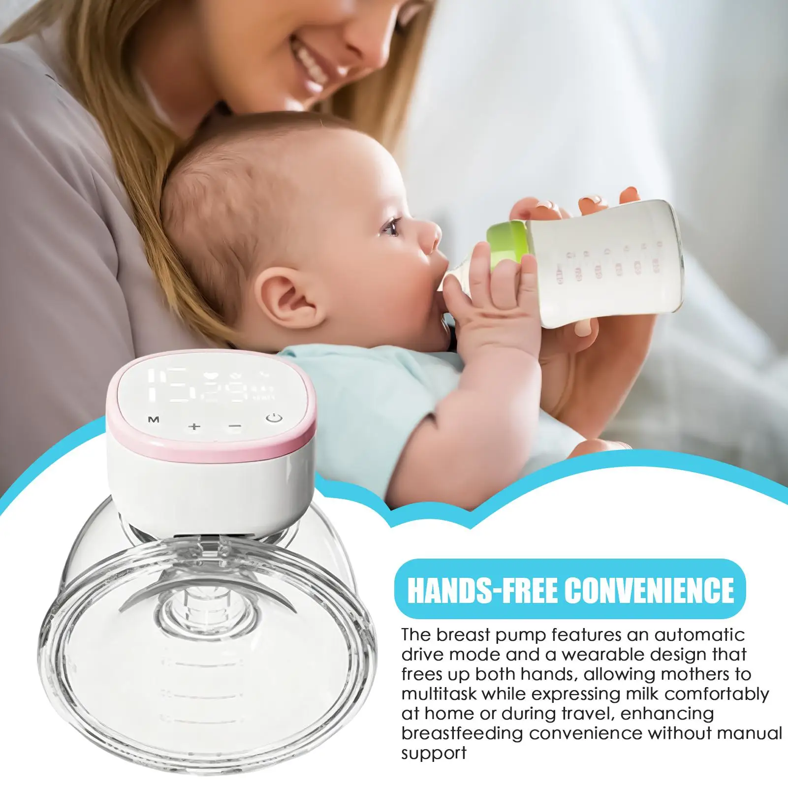 Puntos destacados: 1.Solución inteligente manos libres: diseñado con modo de conducción automática y una estructura portátil, este extractor de leche elimina el soporte manual, liberando ambas manos y maximizando la comodidad de lactancia materna, ya sea en casa, al aire libre o durante rutinas ocupadas. 2.Diseño que ahorra tiempo: Con un sistema de doble frecuencia, este extractor de leche portátil ofrece una recolección de leche eficiente con un tiempo de funcionamiento reducido, brindando un masaje suave para mejorar la comodidad y la confiabilidad, atendiendo perfectamente a las madres modernas que equilibran el trabajo y la vida familiar sin esfuerzo. 3.Bomba de silicona fácil de transportar: con una forma compacta y liviana fabricada con silicona de calidad alimentaria, esta bomba manos libres proporciona una portabilidad excepcional, satisfaciendo diversas necesidades durante el viaje o en el lugar de trabajo y al mismo tiempo garantiza una usabilidad constante en situaciones variadas. 4.Tecnología de motor silencioso: el extractor de leche manos libres está equipado con un motor de reducción de ruido que funciona por debajo de 40 decibelios, ofreciendo una experiencia de extracción serena.La insonorización multicapa garantiza un ruido mínimo, lo que permite a las madres concentrarse en su comodidad sin preocuparse por alterar a familiares o colegas cerca. 5.Solución de limpieza eficiente: el extractor de leche portátil cuenta con un dispositivo antirreflujo extraíble que evita la acumulación de residuos, asegurando un enjuague y secado rápido al aire para un mantenimiento sin complicaciones, ahorrando tiempo y esfuerzo mientras mantiene la higiene durante los días ajetreados. El extractor de leche eléctrico está diseñado para apoyar a todas las madres durante los viajes de lactancia y lactancia con su pantalla inteligente para un control preciso.Con carga rápida, garantiza comodidad cuando se usa en casa o en un hospital.La bomba es fácil de limpiar y proporciona un mantenimiento sin complicaciones después de cada uso.Con su funcionalidad eléctrica, ofrece una expresión de leche eficiente al tiempo que garantiza comodidad con sus piezas de repuesto para pezones cuidadosamente diseñadas.Ideal para el cuidado del bebé, este extractor de leche ayuda a las madres a guardar la leche en bolsas sin esfuerzo.El extractor de leche eléctrico simplifica el proceso de lactancia, convirtiéndolo en una herramienta para madres modernas que buscan soluciones fiables.