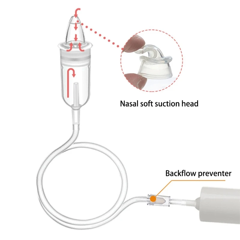 Succión y uso fáciles de controlar: con el principio de presión negativa, la succión se puede controlar libremente y el diseño sellado mejora la succión, por lo que no tiene que preocuparse por el problema de succión. También es fácil de usar, colocando la punta de succión en la fosa nasal del bebé para formar un sello, y luego el adulto tira suavemente del mango para succionar el bebé.