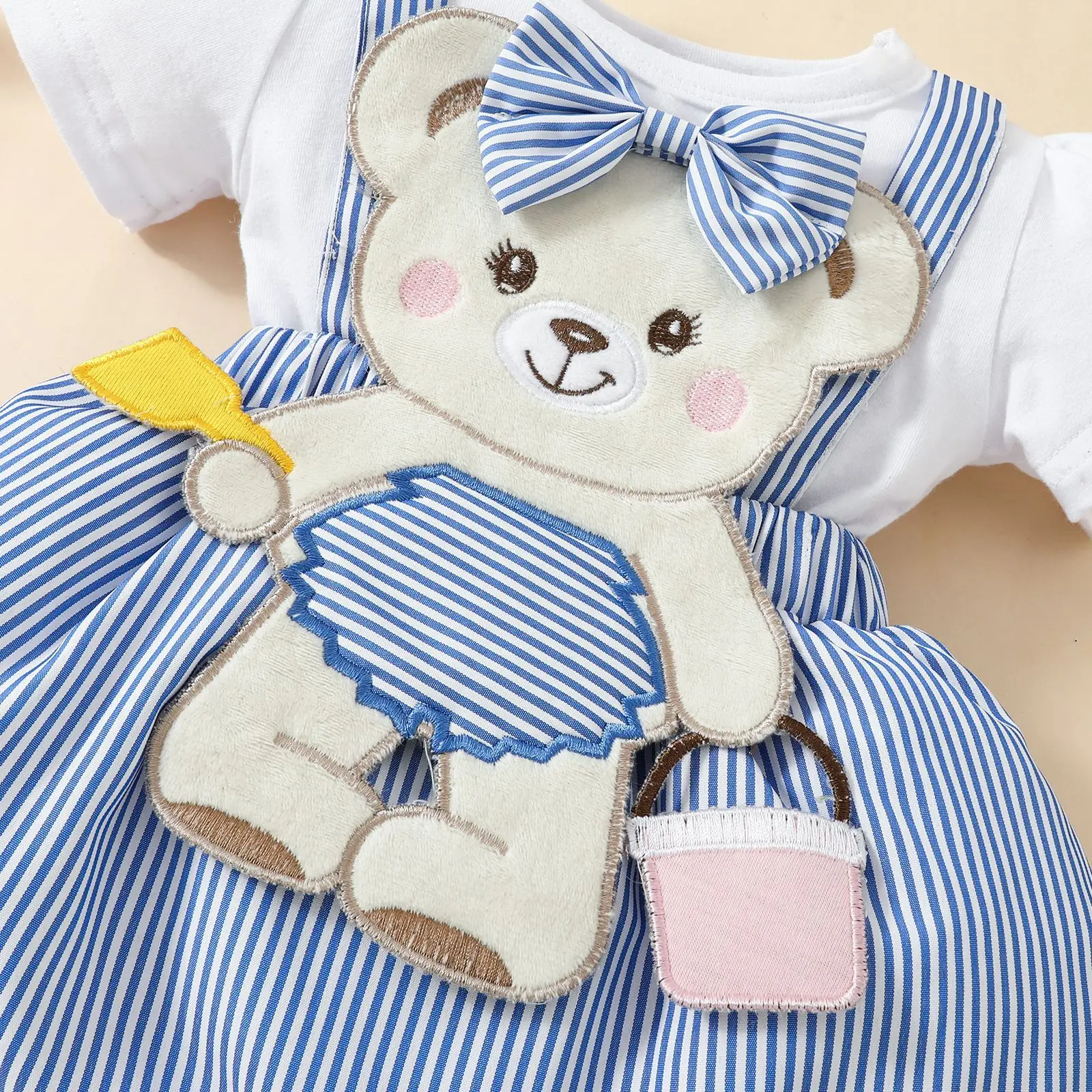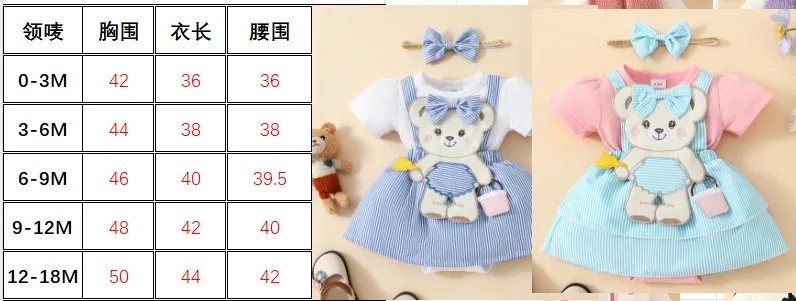 Comprar Falda con tirantes falsos bordados de osito bonito para bebé, vestido Ha triangular de manga corta, falda de doble capa con lazo para recién nacido
