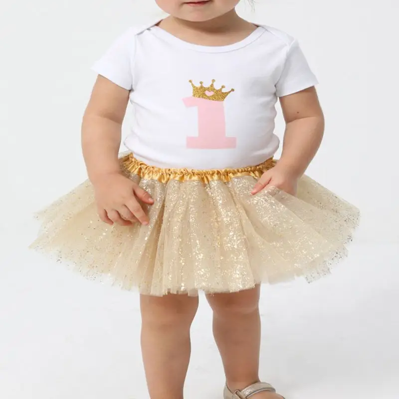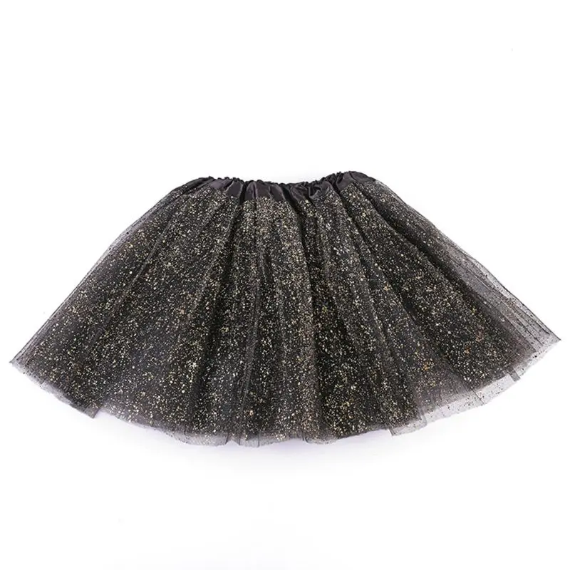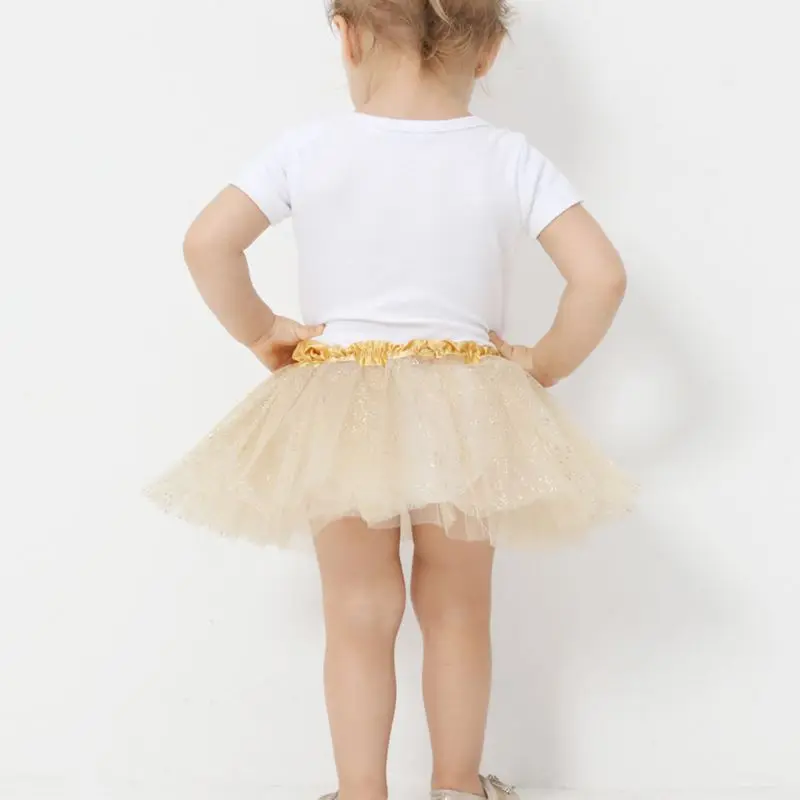 Falda tutú de Ballet para niñas pequeñas, 3 capas de tul con purpurina, lentejuelas doradas, falda Pettiskirt de malla de princesa esponjosa de 0 a 8 años