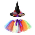Comprar Falda tutú de Halloween para padres e hijos, sombrero de bruja, arcoíris, bloque de colores, tul, Bowknot, disfraces