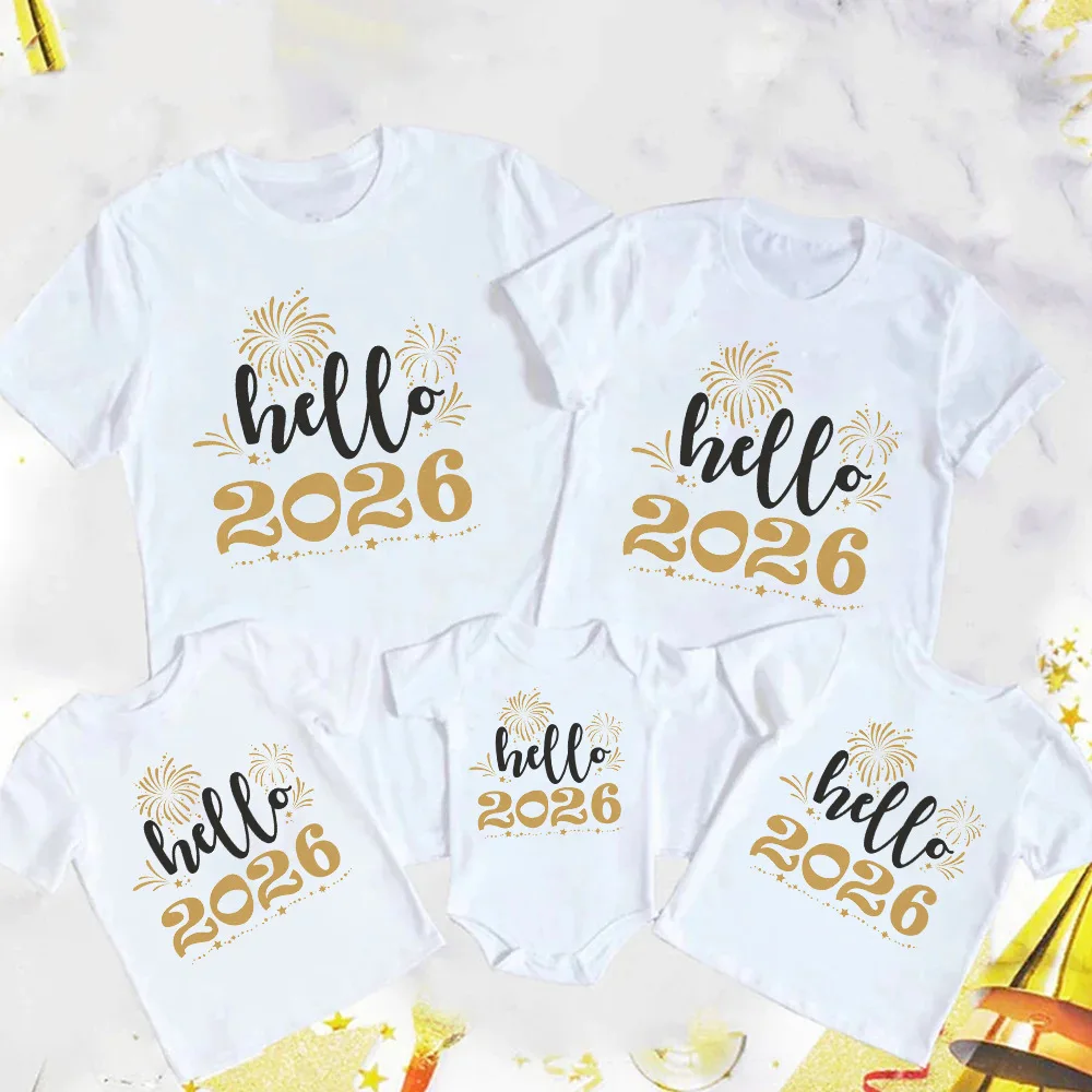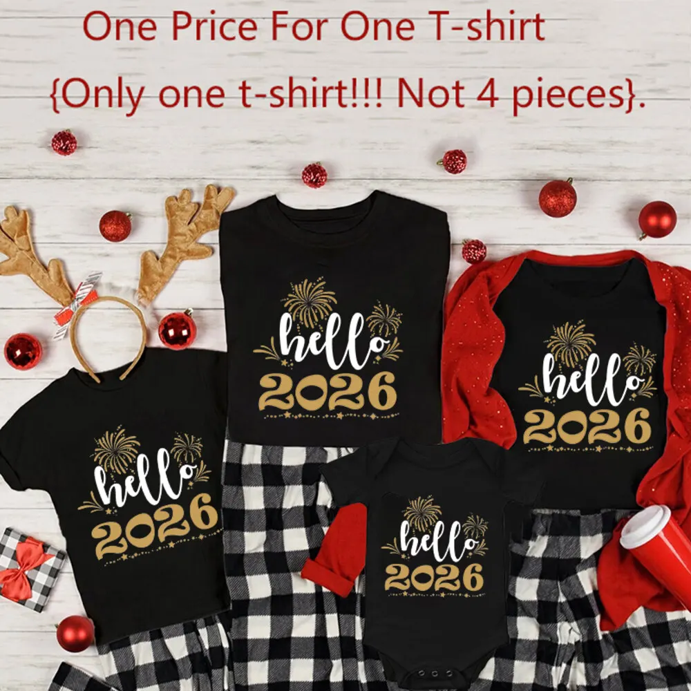 Comprar Feliz Año Nuevo Hola 2026 papá mamá niños camisetas ropa de vacaciones familia Año nuevo Tops a juego traje