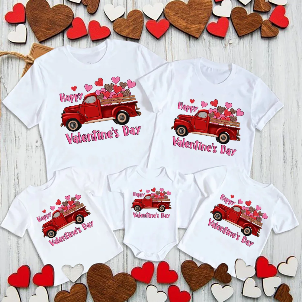 Feliz día de San Valentín estampado familia traje a juego fiesta de San Valentín camisas familiares papá mamá Bro Sis camiseta y mono para bebé mameluco