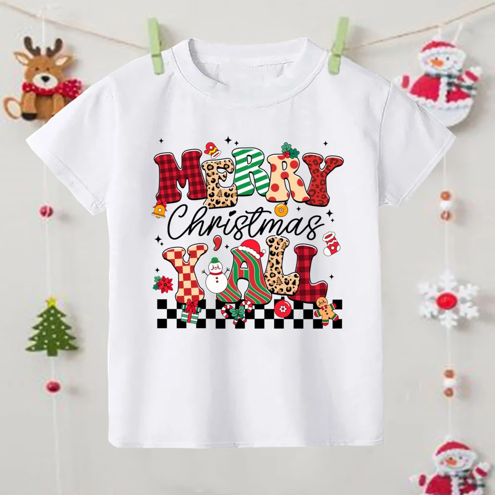 Feliz Navidad Y'all camisa estampada niños niñas traje de Navidad camiseta niños Holidy camiseta Navidad niño camisetas de manga corta ropa