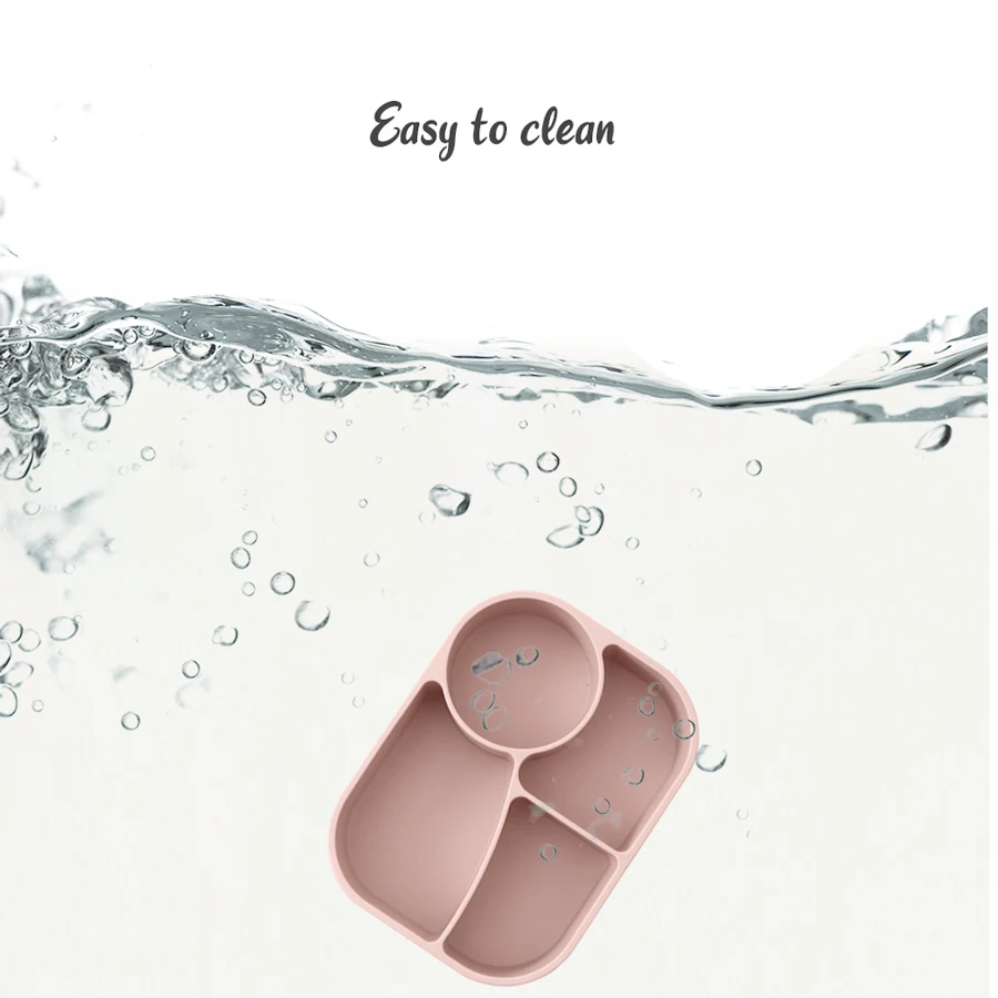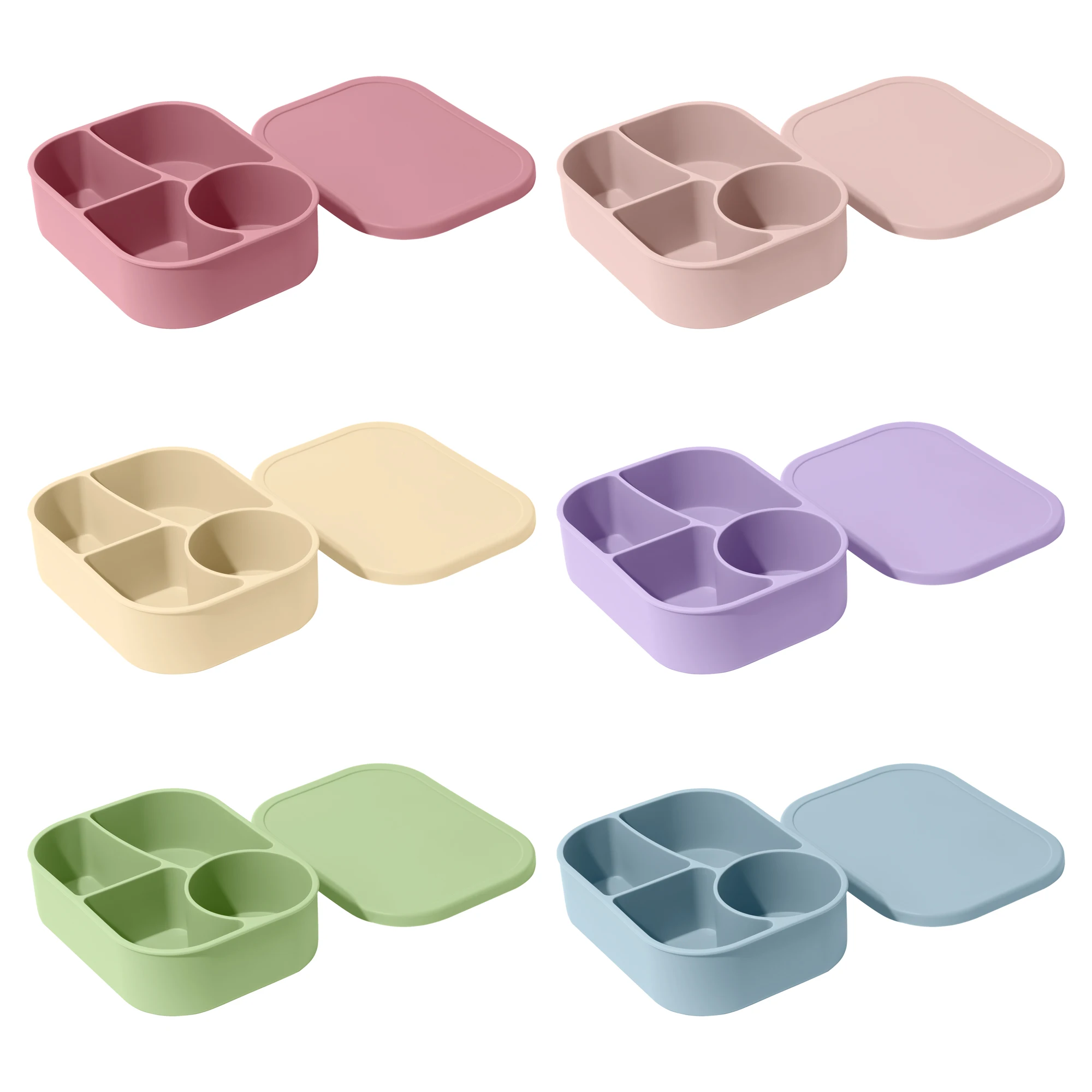 Fiambrera de silicona para niños, 1 Uds., 4 compartimentos, sin BPA, apto para microondas, apto para lavavajillas, elementos esenciales de alimentación Bento a prueba de fugas