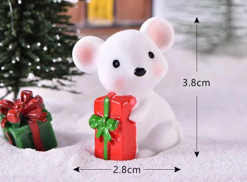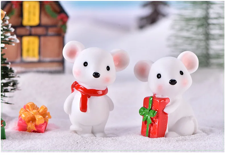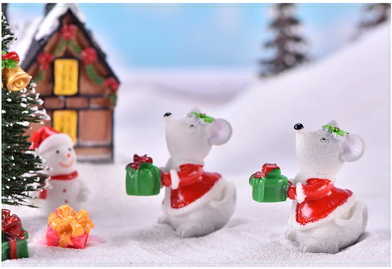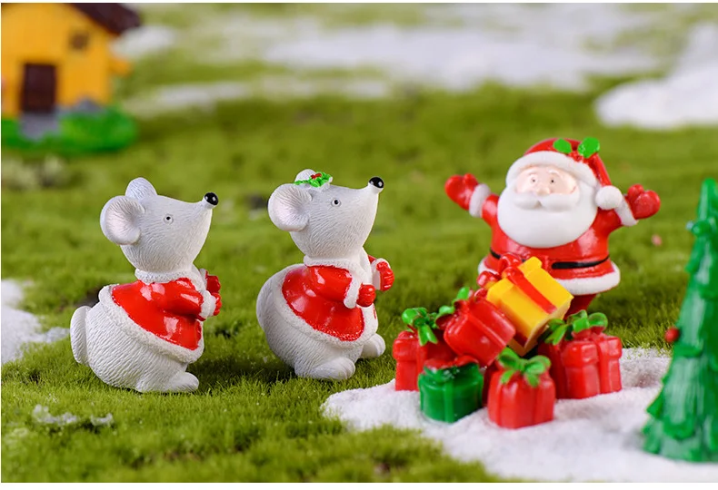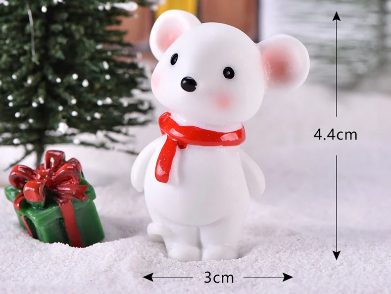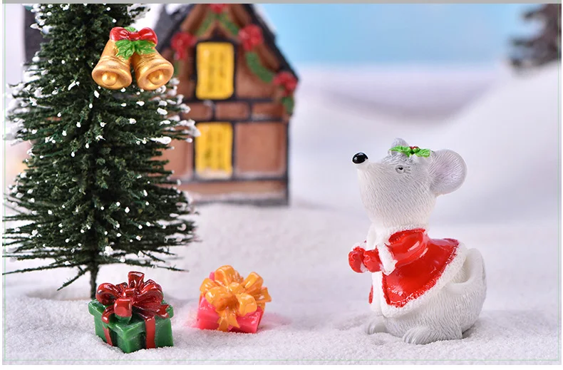 Figura de ratón de Navidad, rata de dibujos animados, modelo Animal, paisaje de musgo, artesanía de resina, accesorios de decoración de jardín de hadas en miniatura para el hogar