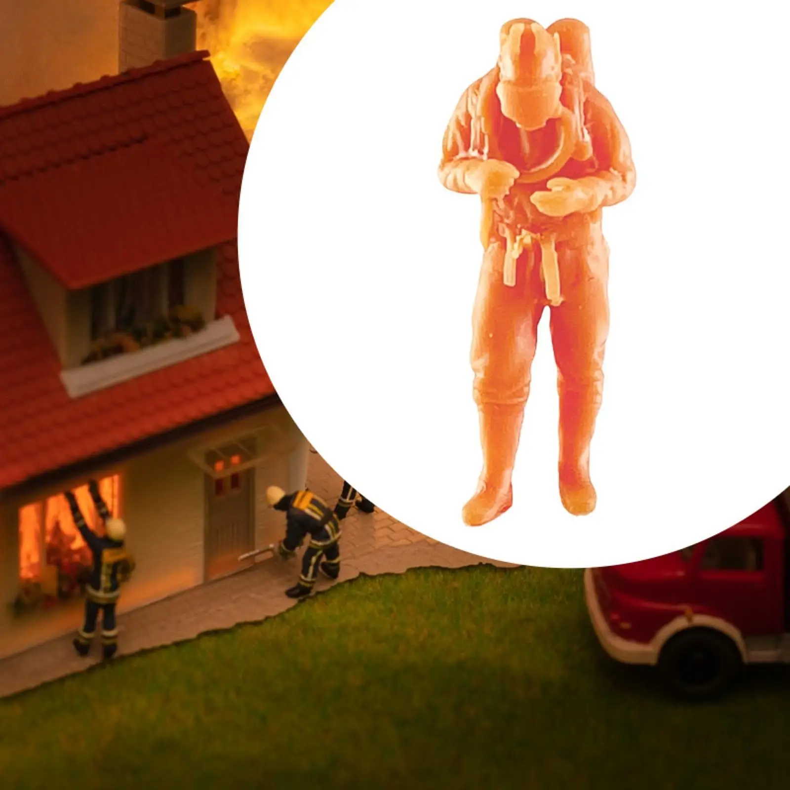 Comprar Figuras a escala 1/64, figura de bombero, figura realista, accesorio de película creativa, modelo de fuego en miniatura para diseño de Diorama