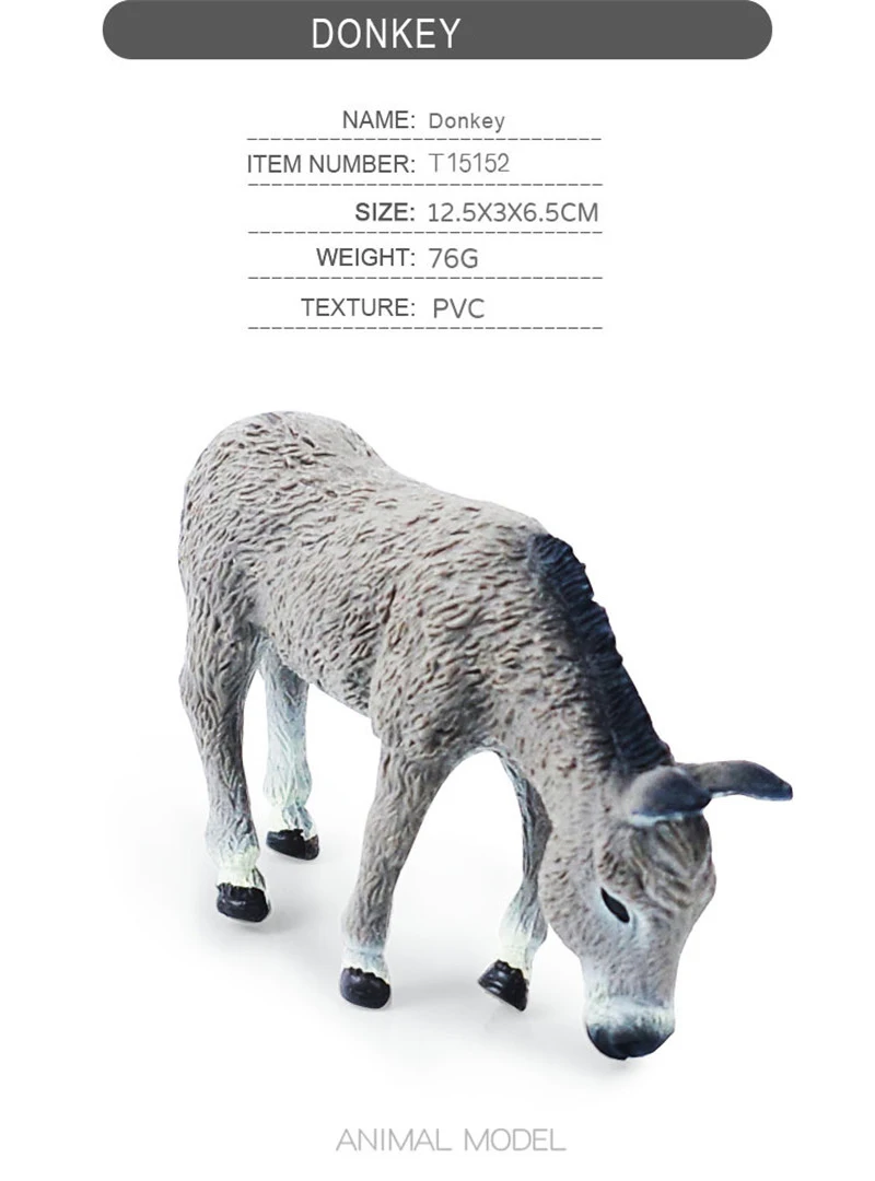 Figuras de burro Figuras de animales de granja reales Figura de acción de anime Juguetes novedosos para niños Juegos Animales de plástico para niños Regalos de Navidad