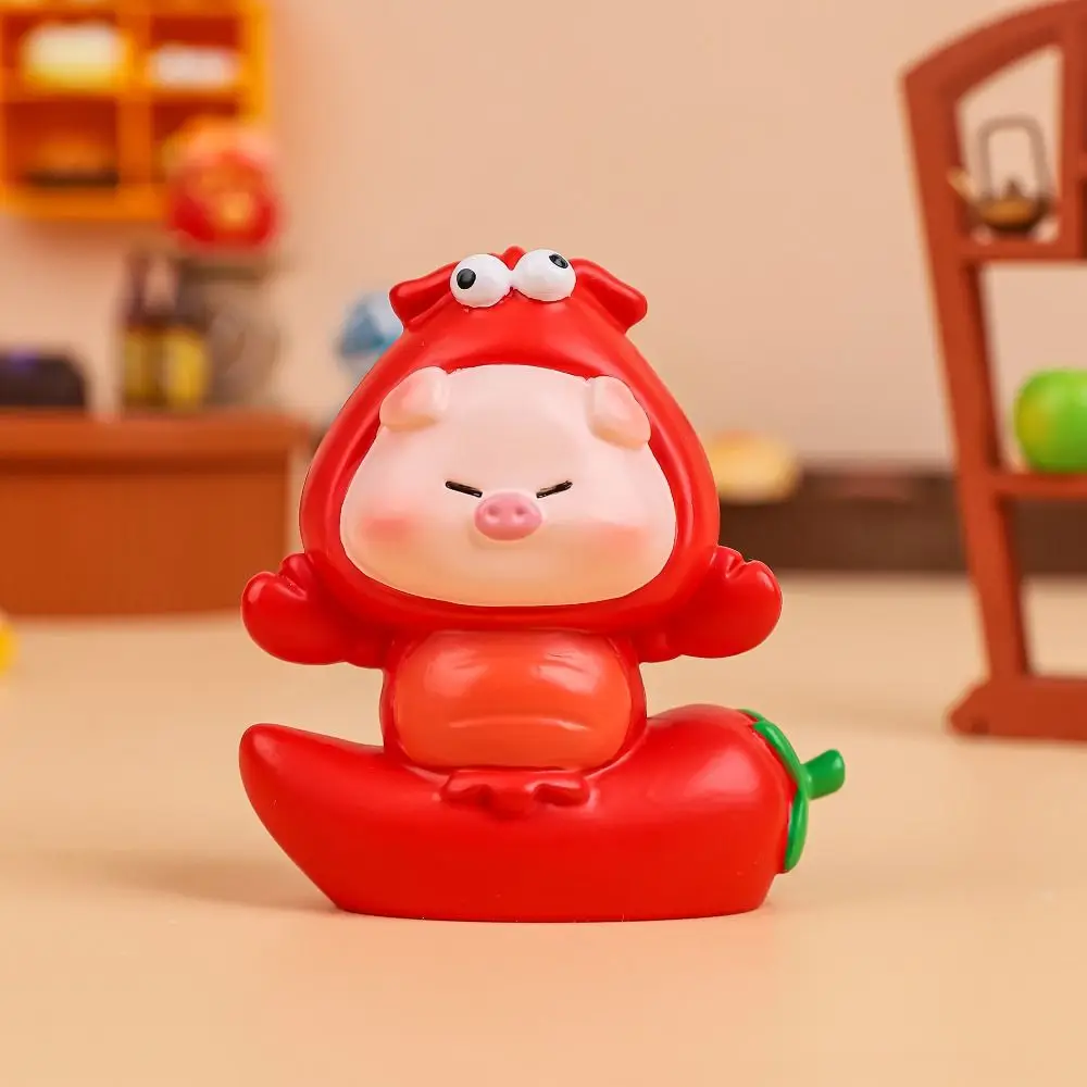 Comprar Figuras de cerdo de hamburguesa de dibujos animados de resina, colección de micropaisaje, Chips, miniaturas de cerdo, adorno, Mini joyería