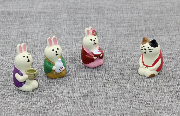 Comprar Figuras en miniatura de conejo y gato japonés Zakka Decole, estatua, decoración del hogar, jardín de hadas, artesanía de resina, juguete, adornos de bonsái