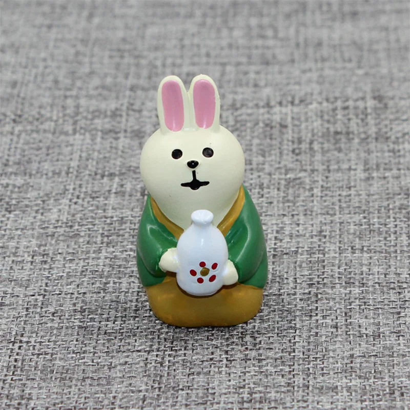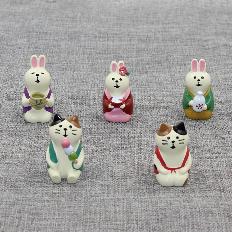 Comprar Figuras en miniatura de conejo y gato japonés Zakka Decole, estatua, decoración del hogar, jardín de hadas, artesanía de resina, juguete, adornos de bonsái