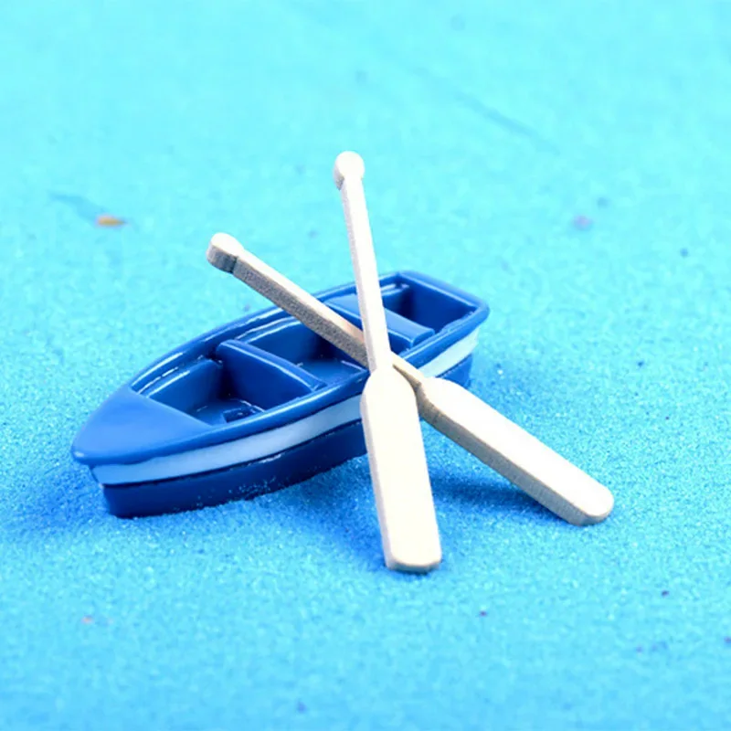 Comprar Figuras de remos de madera de barco de resina azul, estatuilla decorativa Diy, decoración del hogar, Mini Jardín de hadas, acuario, tanque de peces, estatua artesanal