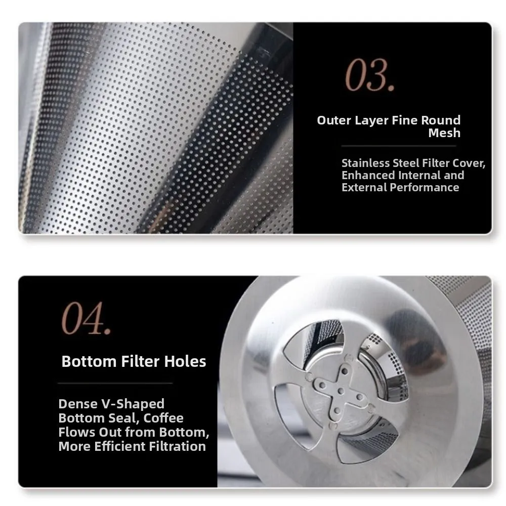 Wide Base Stand: Offering more stability and reliability than standard pour over filters, helps prevent tipping or pouring accidents