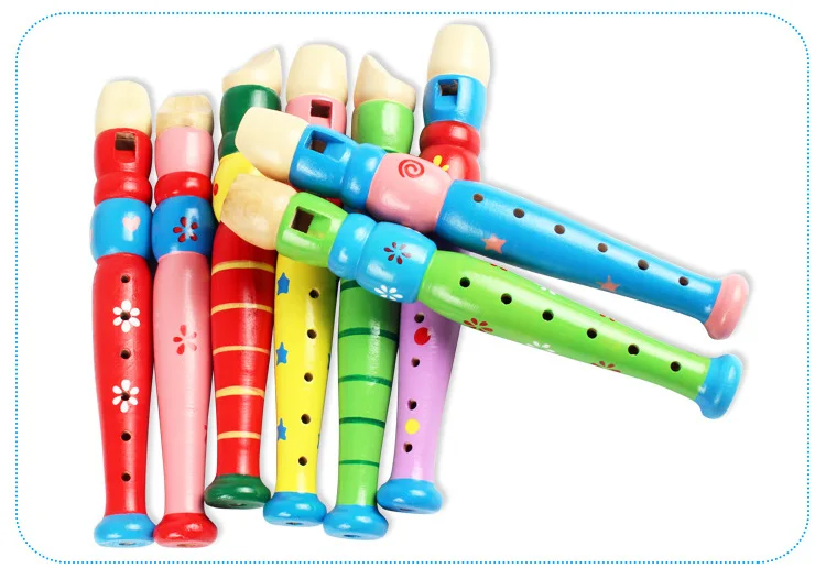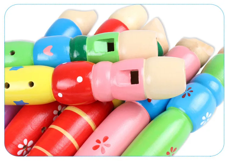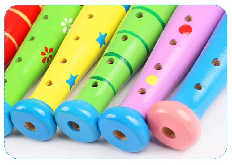 Comprar Flauta de dibujos animados de madera para niños, clarinete de 6 agujeros, instrumento Musical Piccolo, juguetes educativos de Aprendizaje Temprano, 1 ud.