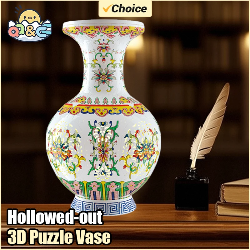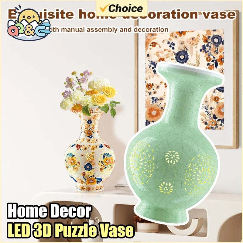 Comprar Florero rompecabezas LED 3D, flor ligera, diseño de porcelana, decoración del hogar, montaje artesanal, juguetes educativos Montessori, regalo para adultos y niños