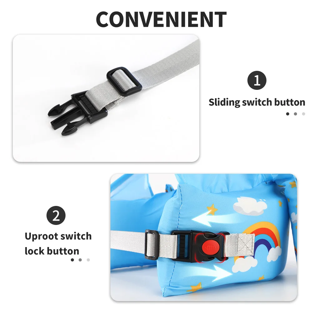 Más estructura de seguridad:Hebilla de seguridad del interruptor deslizante mejorada, natación más tranquila para bebés