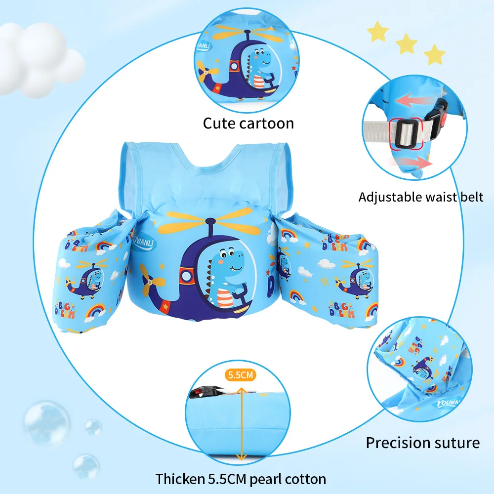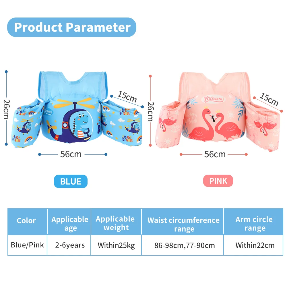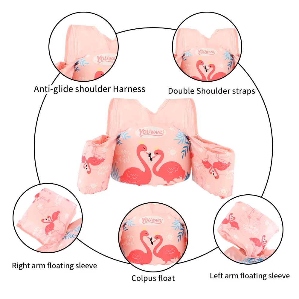 Comprar Flotador de brazo de doble hombro no inflable para bebé, equipo de natación con botón de interruptor deslizante, chaleco salvavidas de agua para niños