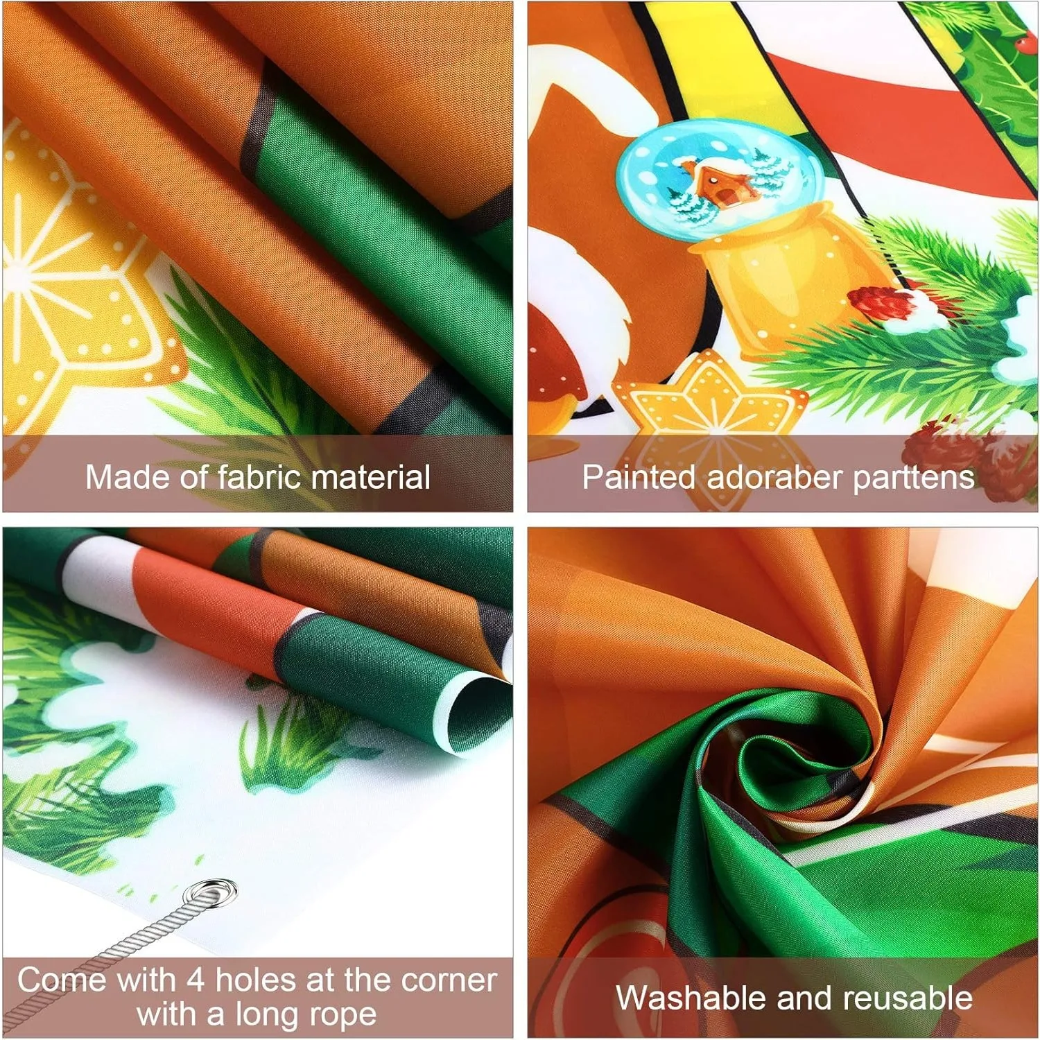 La pancarta de accesorios para fotomatón de hombre de jengibre viene con una cuerda de 6 metros de largo, que se puede colgar fácilmente a través del ojal de cobre sin otras herramientas, adecuada para uso en interiores y exteriores.