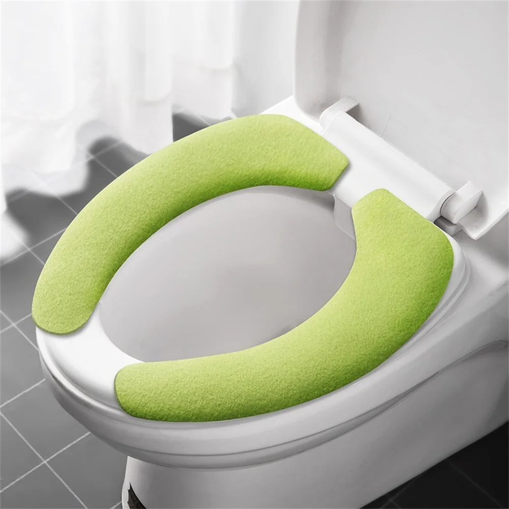 Funda de asiento de inodoro lavable, conjunto Universal, pegatina de franela cálida reutilizable para inodoro, cubiertas de asiento de inodoro, tapete de baño de relleno