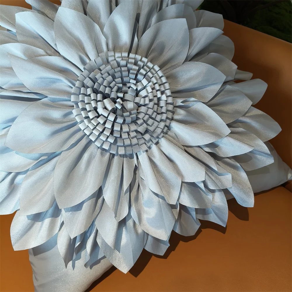 Fundas de cojín decorativas grises para sofá, funda de almohada de girasol 3D, funda de almohada de lujo hecha a mano para cama, funda de almohada plateada gris bohemia