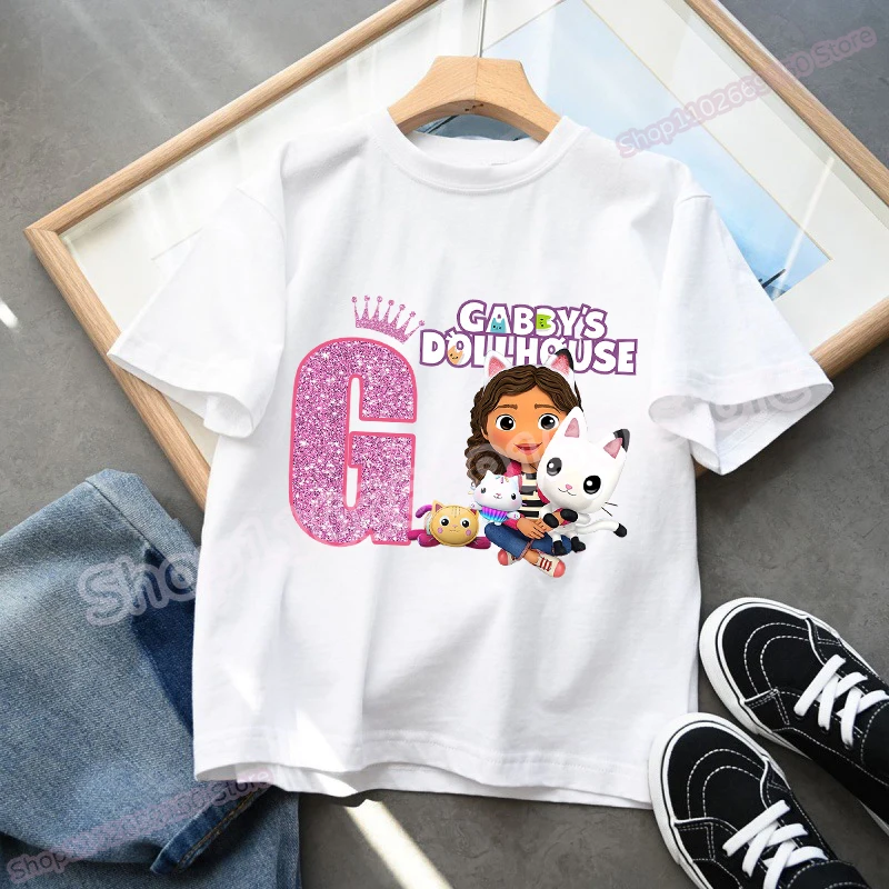 Comprar Gabby Dollhouses informal-Camiseta de algodón para niños, Top estampado de Anime, moda de verano, camiseta Kawaii, ropa de dibujos animados, regalo