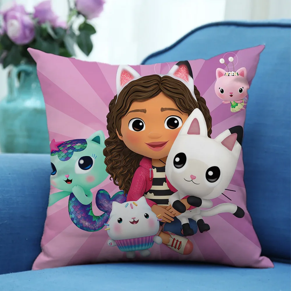 Comprar Gabby-funda de almohada con estampado de dibujos animados para niños, cubierta de almohada con diseño de casas de muñecas, decoración de cama, 45x45cm
