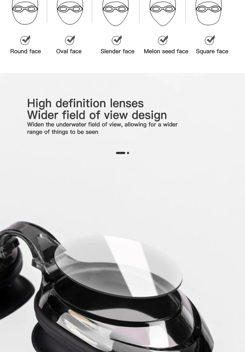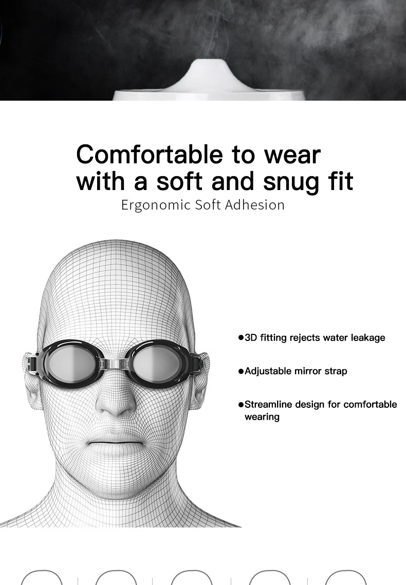 • Impermeable y antivaho:Estas gafas de natación están diseñadas con una característica impermeable y un espejo antivaho, lo que garantiza una visión clara bajo el agua y evita el empañamiento durante la natación.