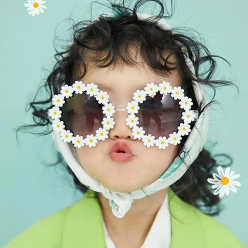 2 unids/set de gafas de sol con flores de margaritas con diadema de nailon elástico para bebé, para playa bohemias gafas de sol, gafas de sol para niños, tocado con lazo