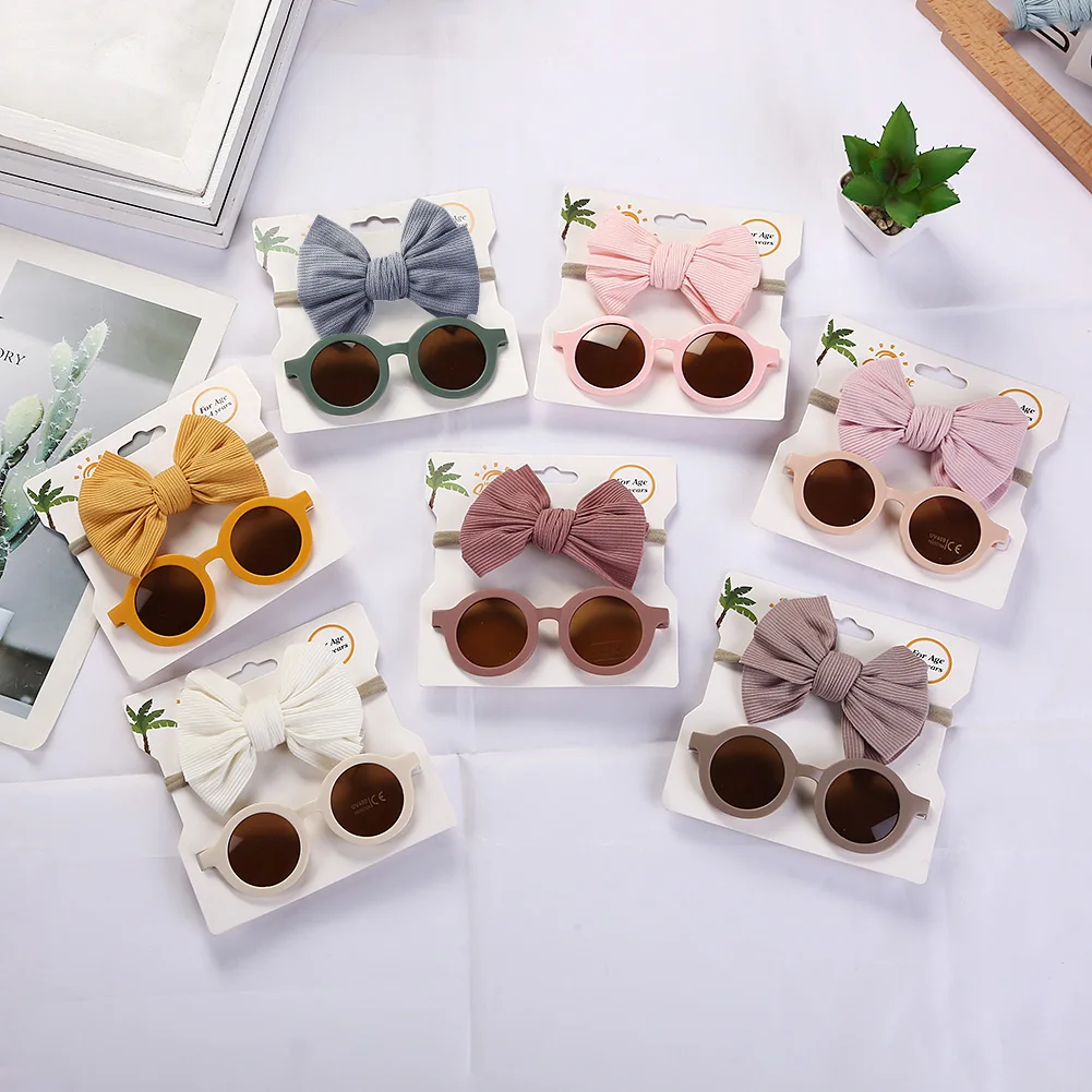2 unids/set gafas de sol redondas para bebés, gafas de sol Vintage para niños, protección UV400, gafas clásicas para niños, accesorios para el cabello de verano