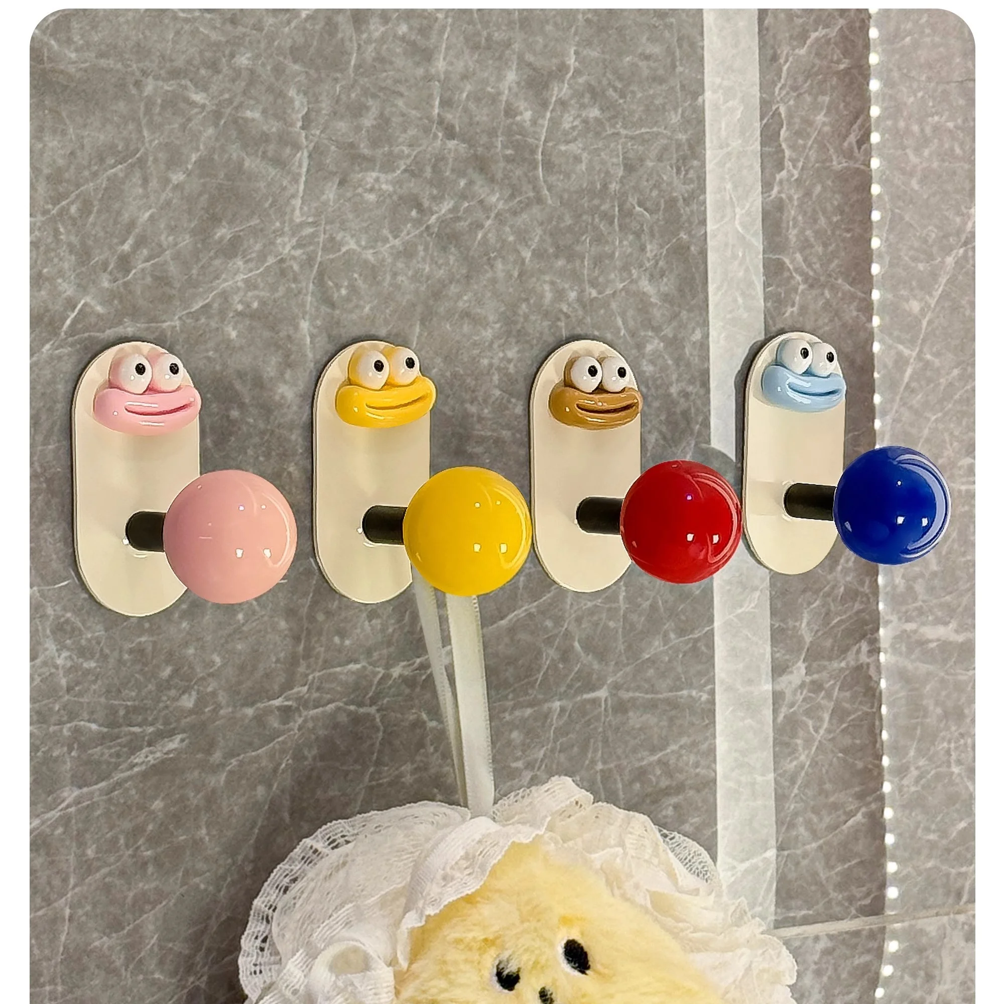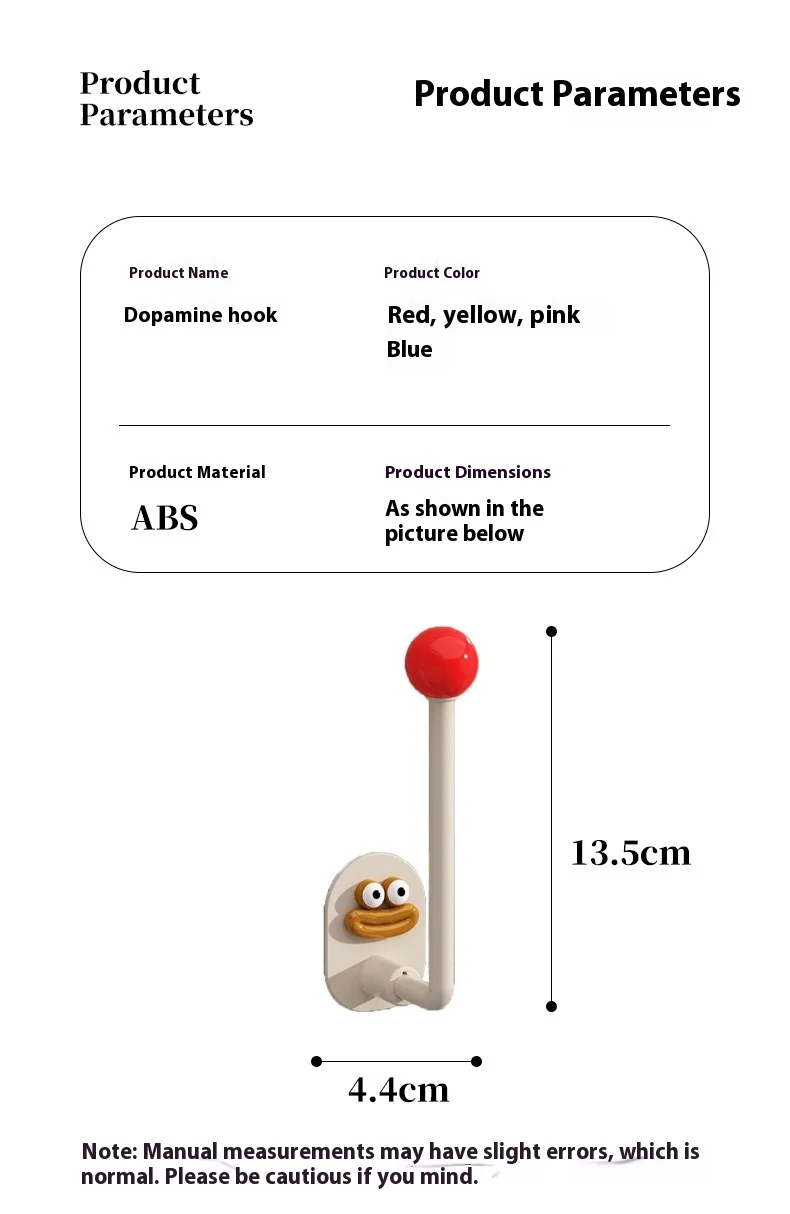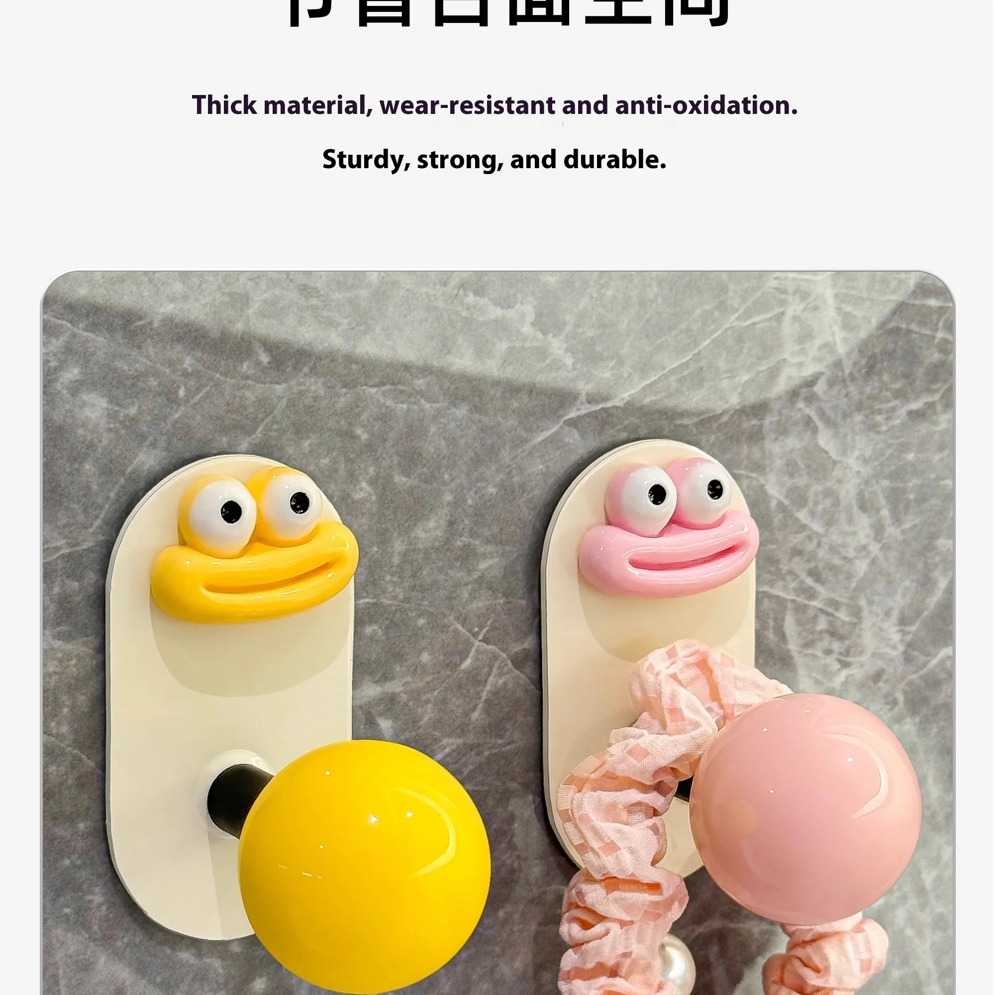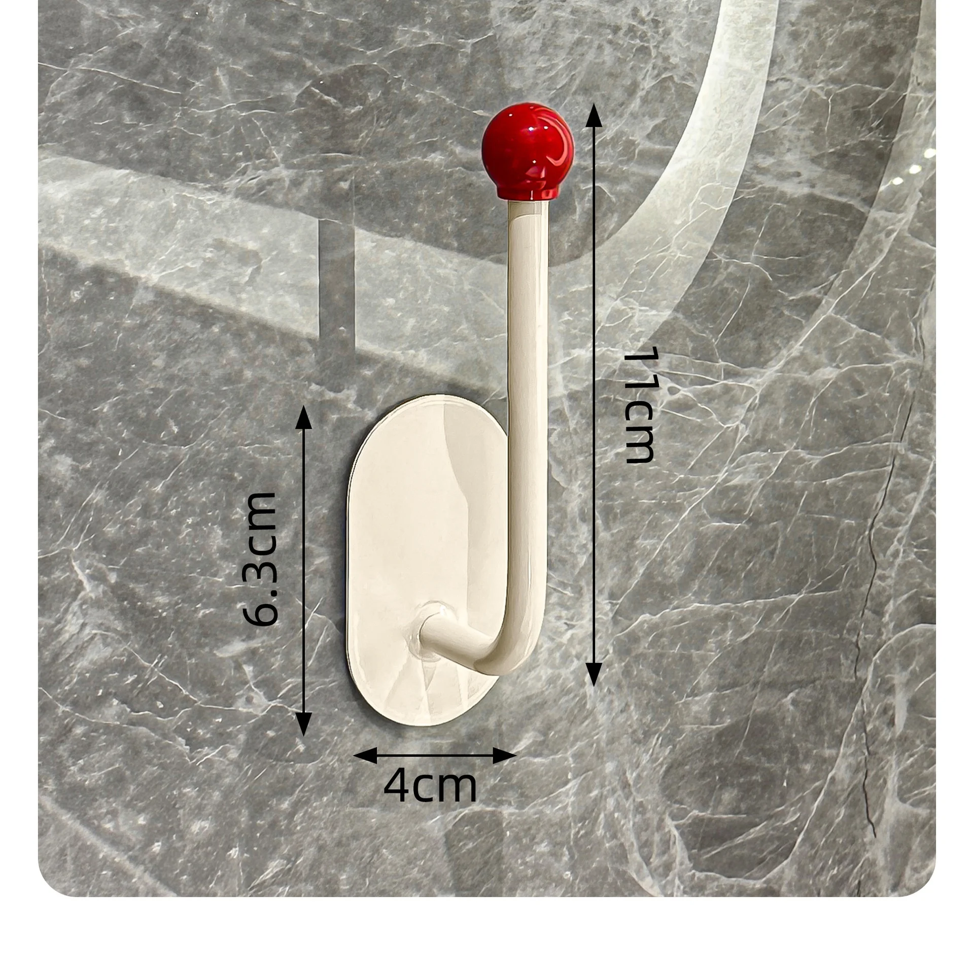 2.Diseño: La superficie es crema con una bola de colores, lo que le da al anzuelo un gran atractivo.El gancho se fija con pegamento, no es necesario perforar, es resistente al agua y soporta carga, fija firmemente el artículo.