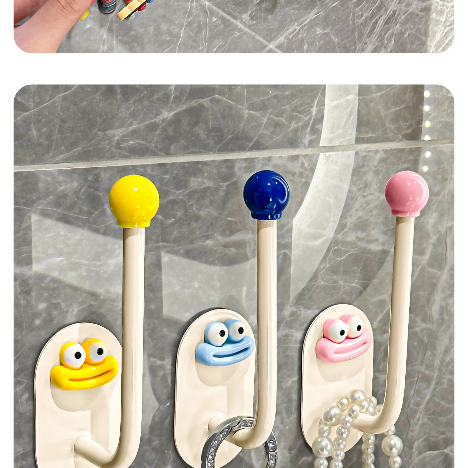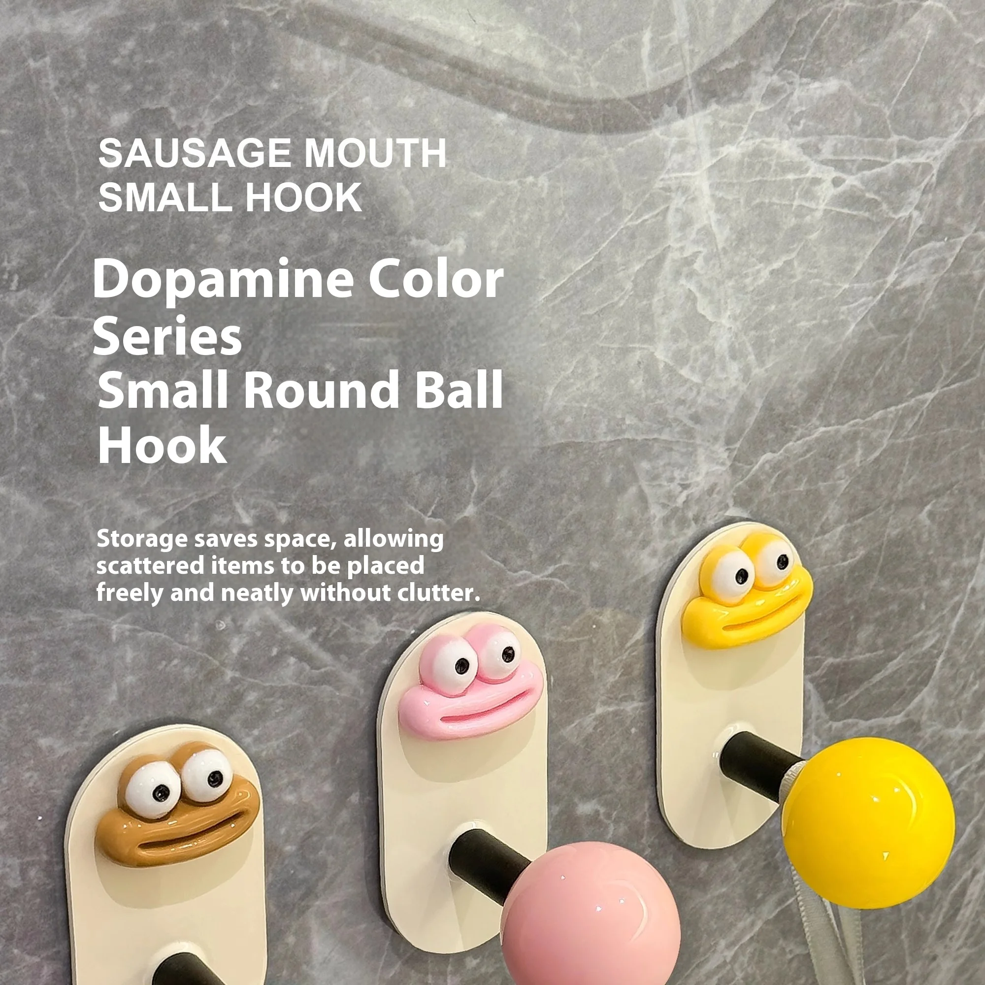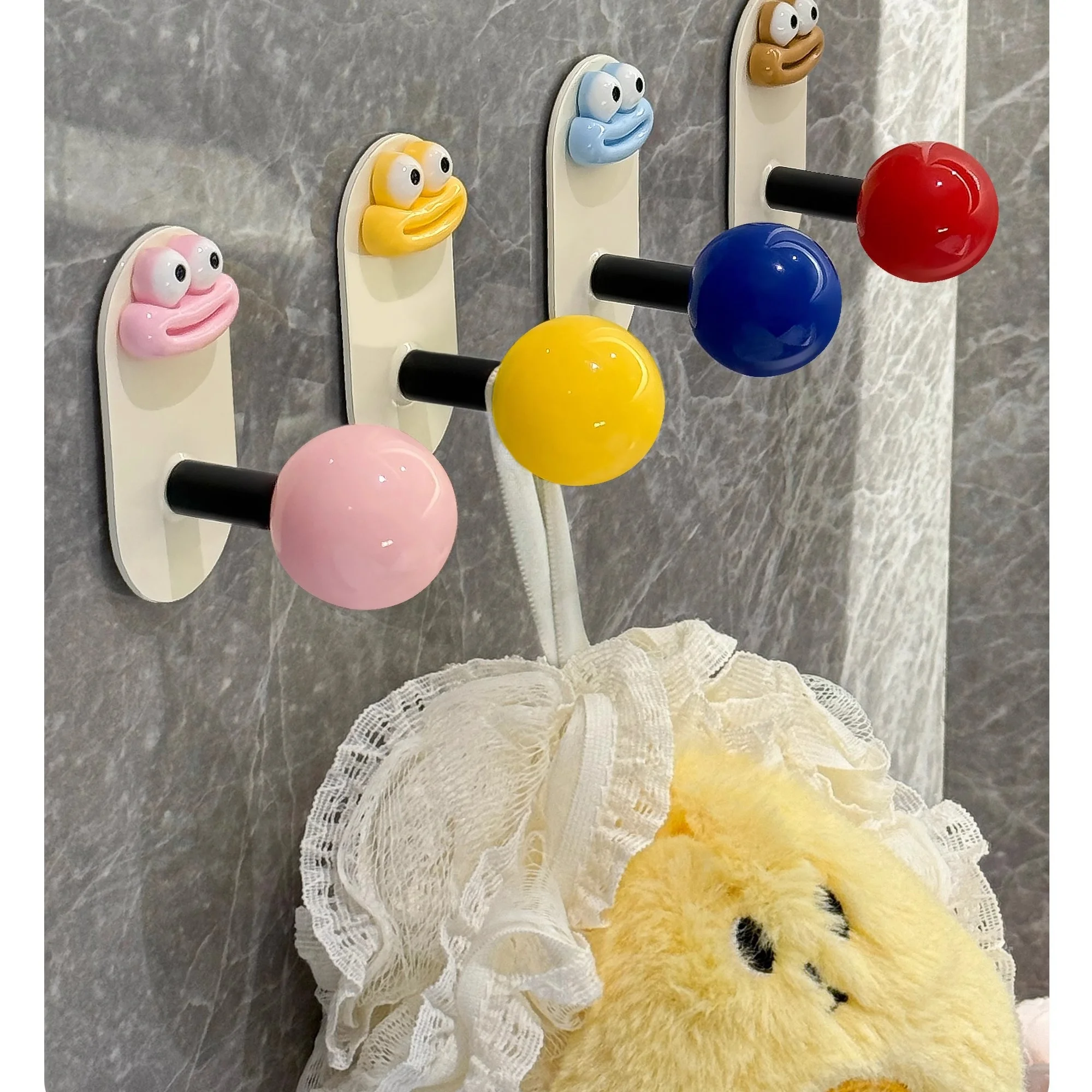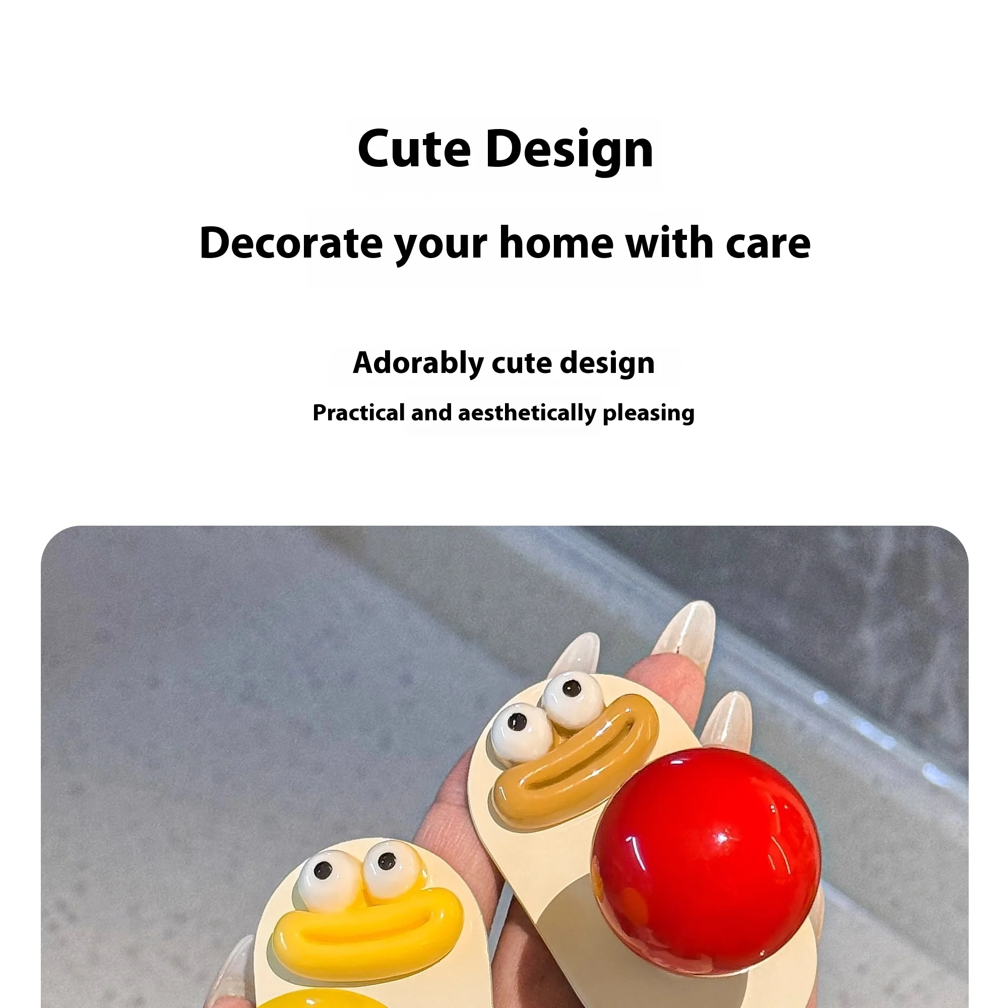 2.Diseño: La superficie es crema con una bola de colores, lo que le da al anzuelo un gran atractivo.El gancho se fija con pegamento, no es necesario perforar, es resistente al agua y soporta carga, fija firmemente el artículo.