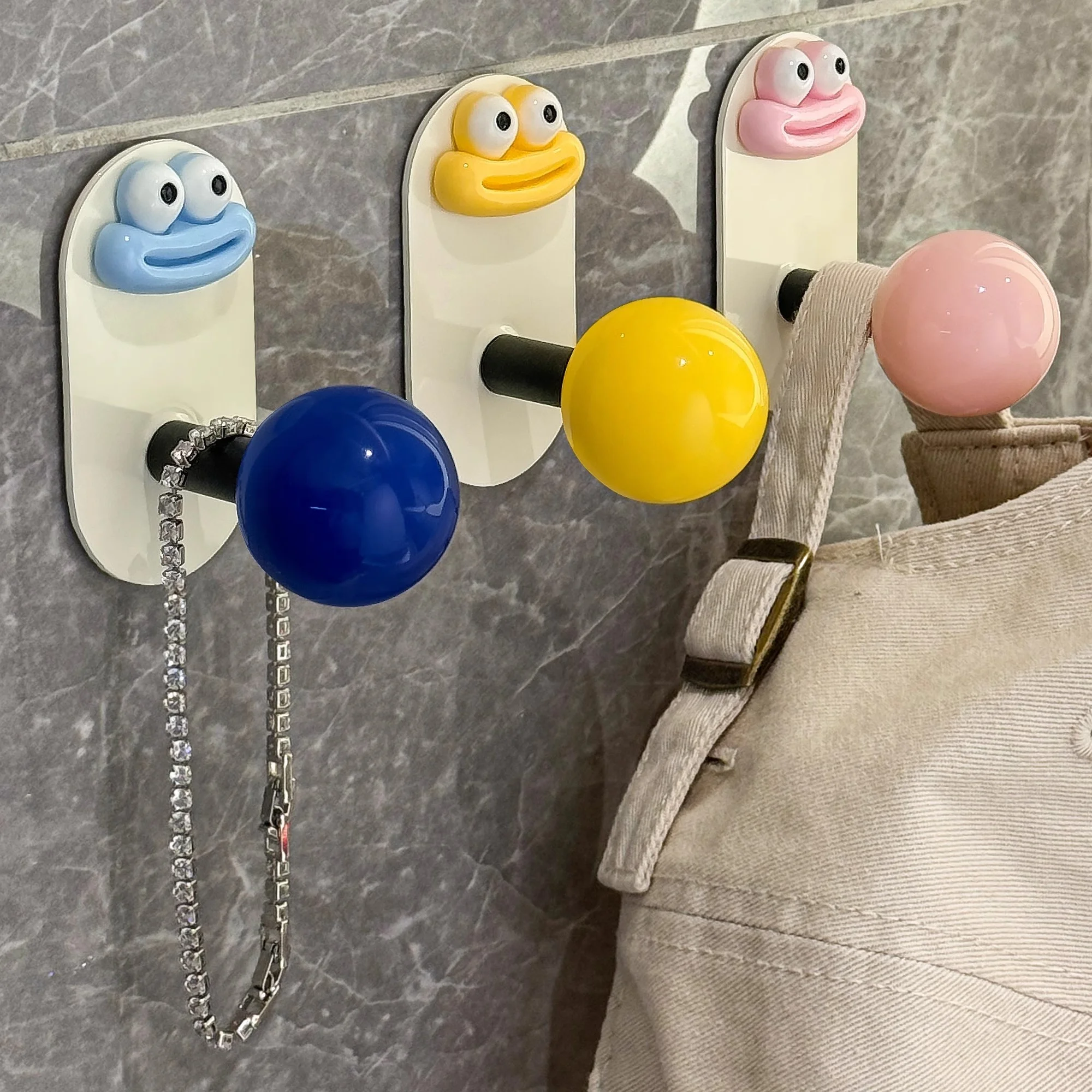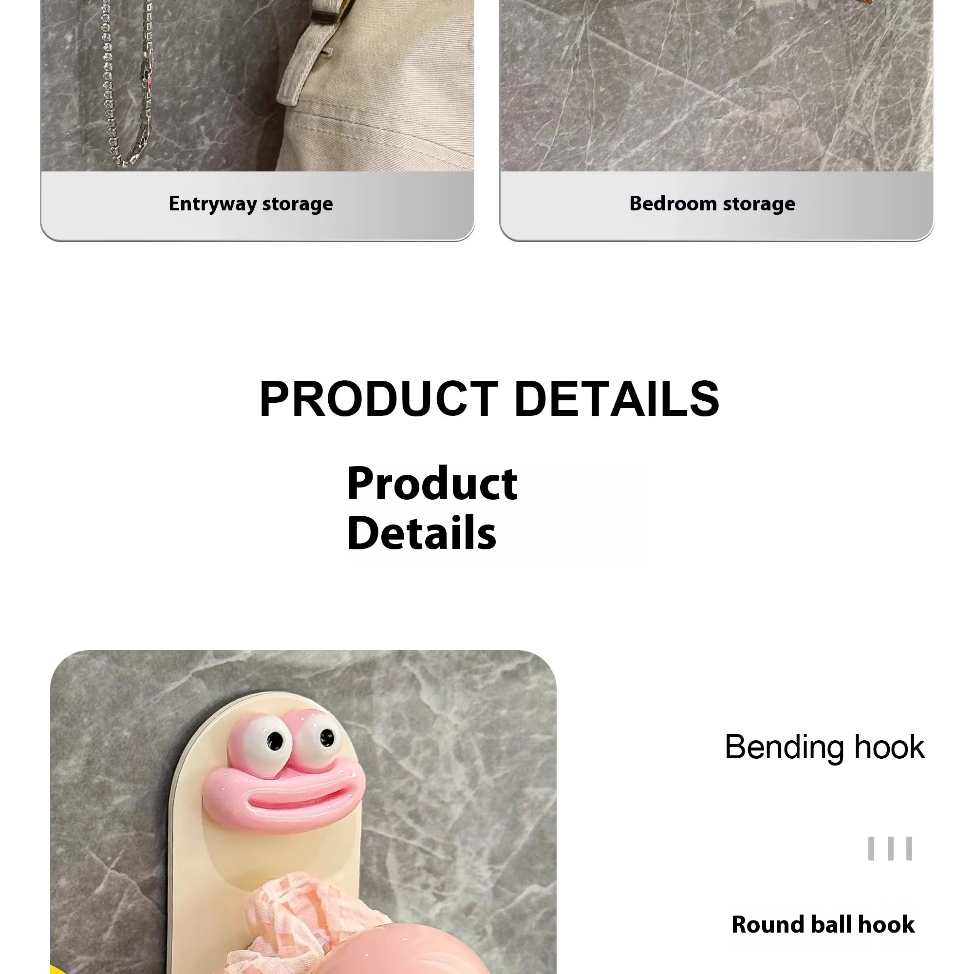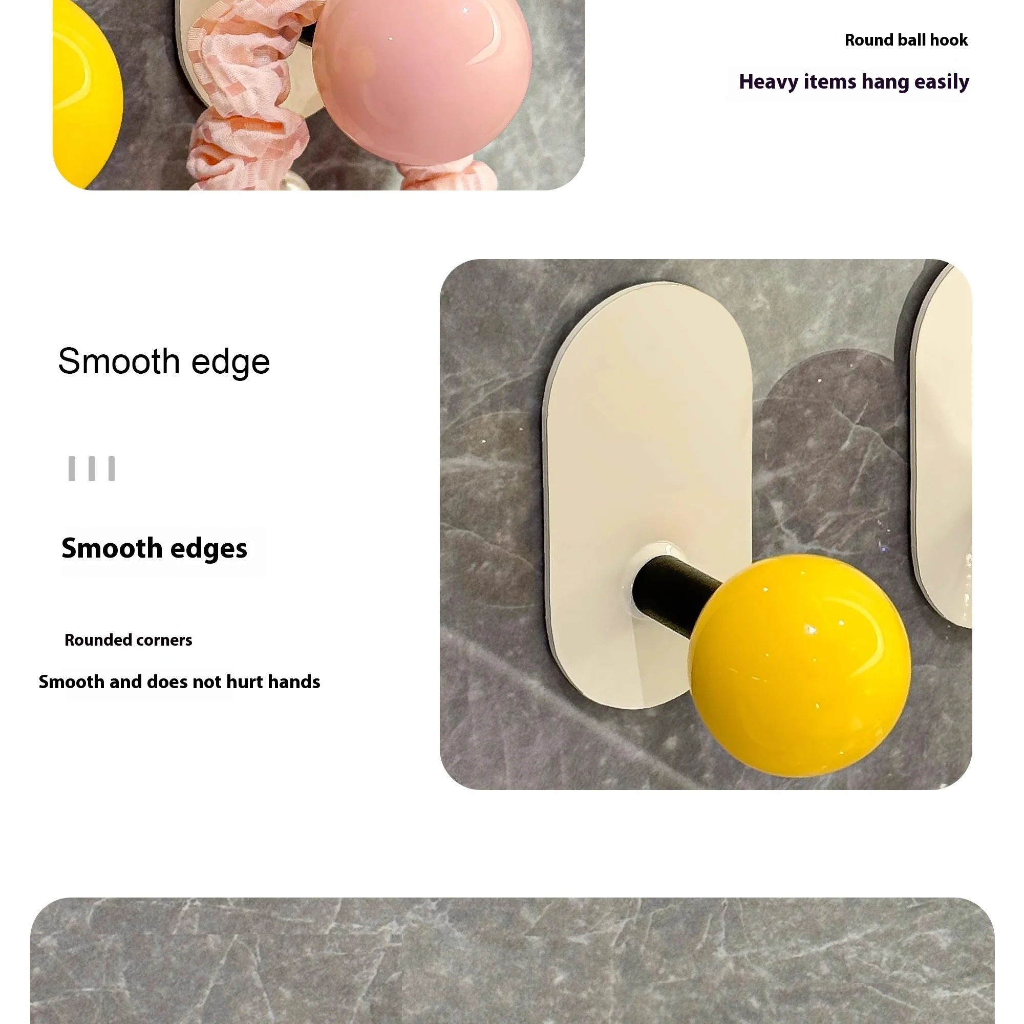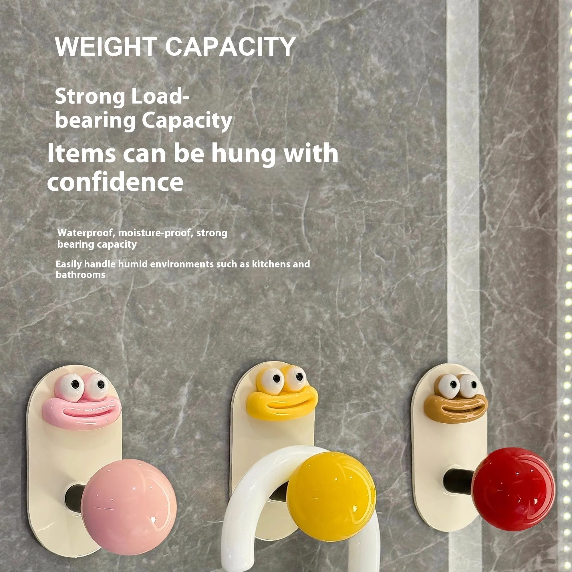 2.Diseño: La superficie es crema con una bola de colores, lo que le da al anzuelo un gran atractivo.El gancho se fija con pegamento, no es necesario perforar, es resistente al agua y soporta carga, fija firmemente el artículo.