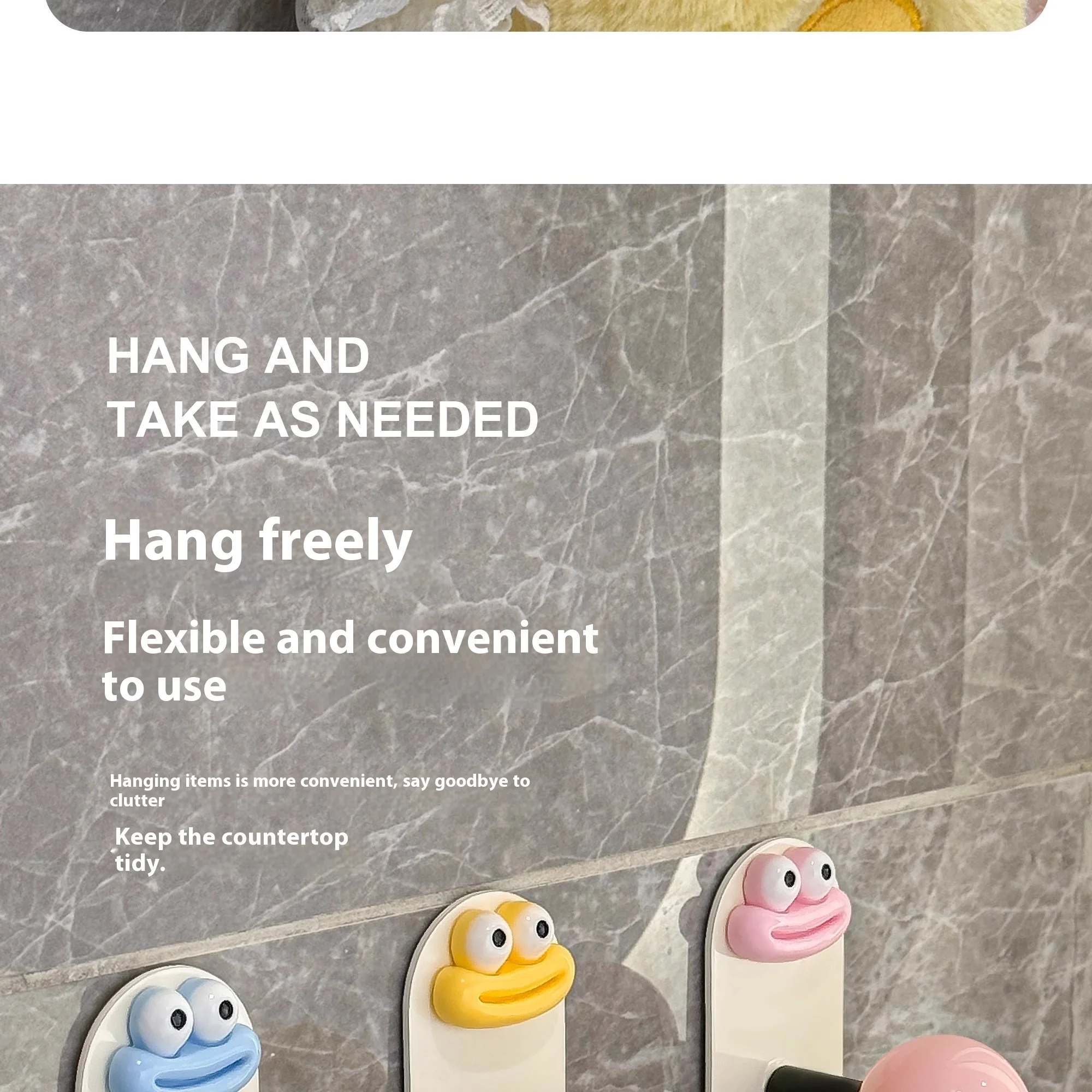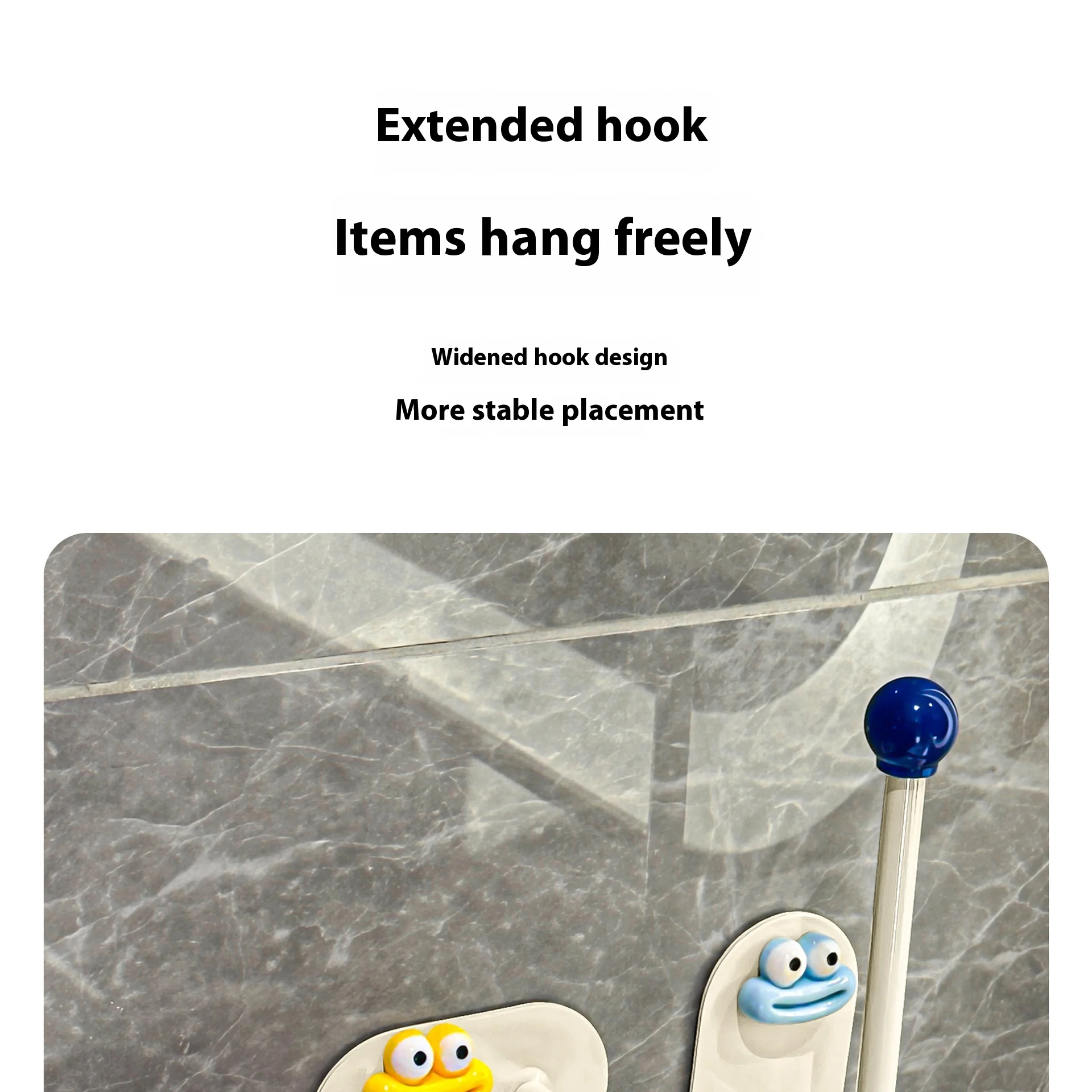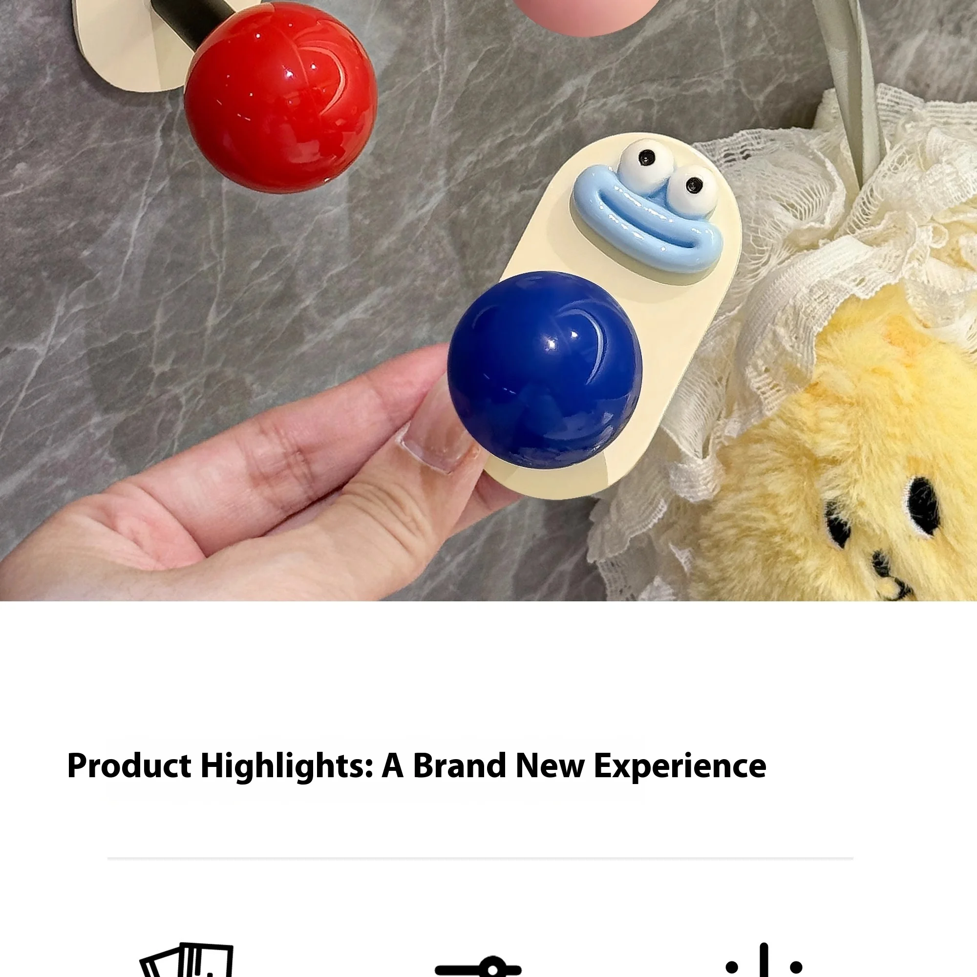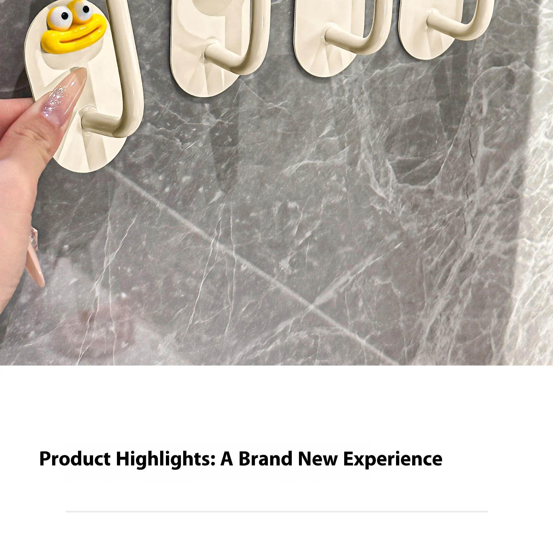 2.Diseño: La superficie es crema con una bola de colores, lo que le da al anzuelo un gran atractivo.El gancho se fija con pegamento, no es necesario perforar, es resistente al agua y soporta carga, fija firmemente el artículo.