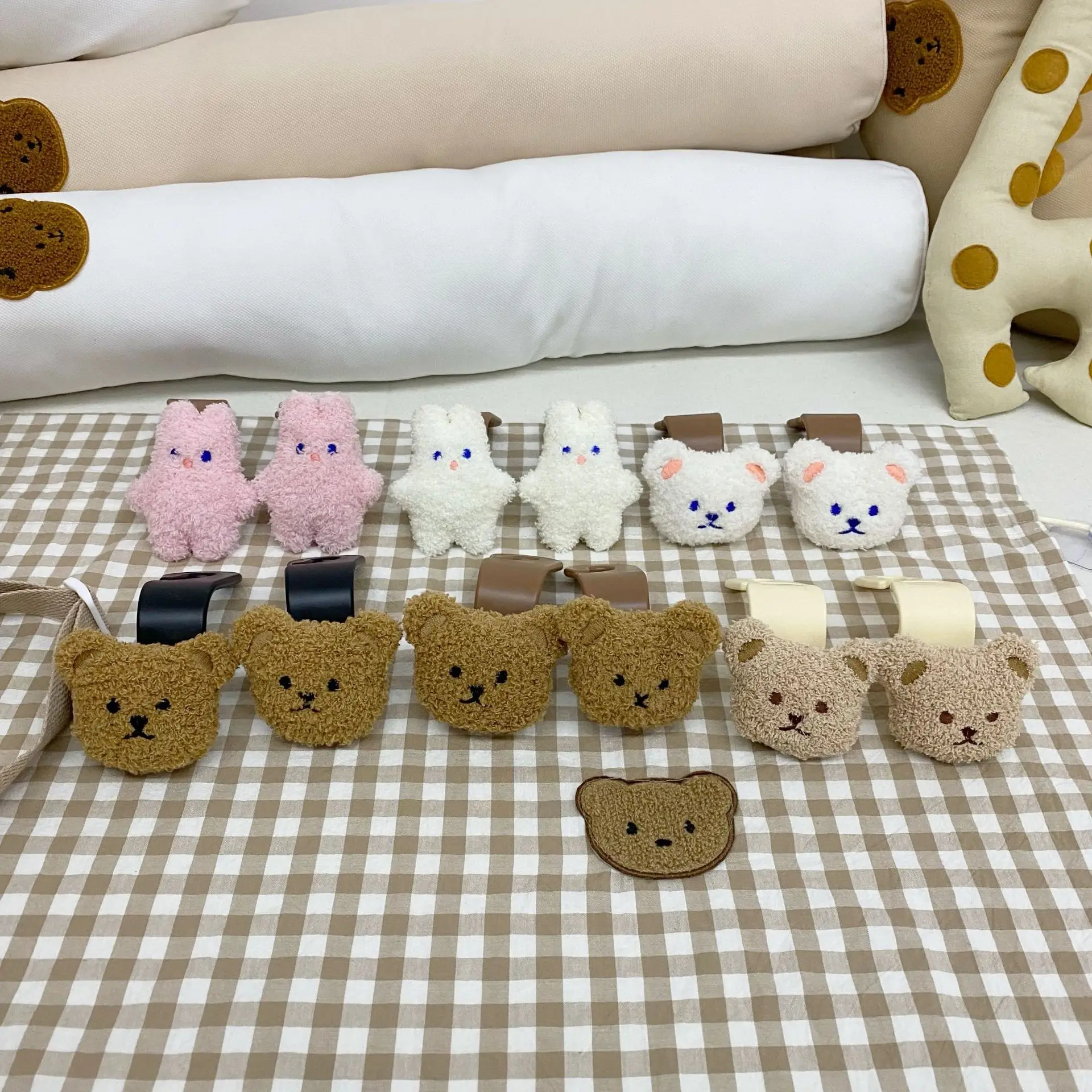 2 uds ganchos de oso de dibujos animados gancho trasero para asiento de coche colgador de cochecito ganchos portátiles para asiento de coche para bolso bolsos almacenamiento accesorio para bebé