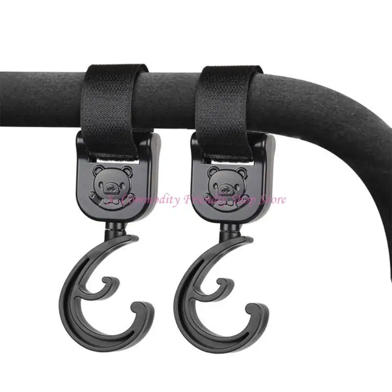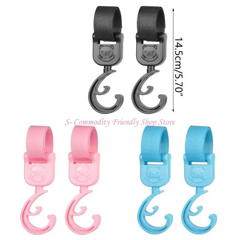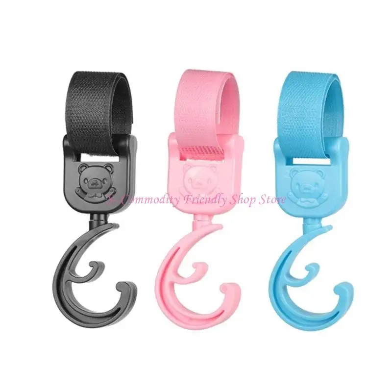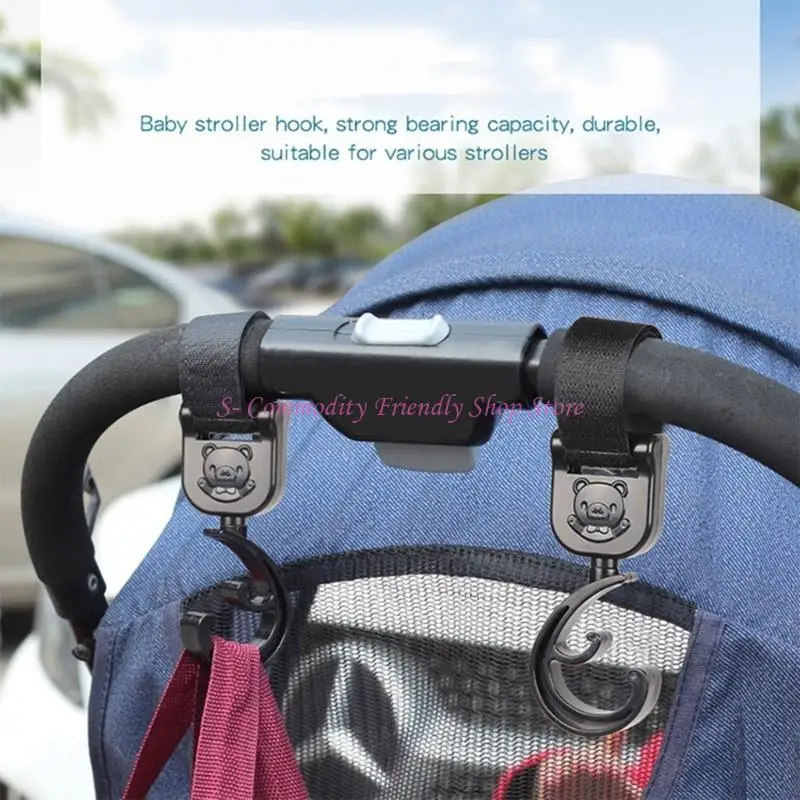 Gancho único con patrón de oso de dibujos animados: nuestro gancho para bebé presenta un hermoso patrón de oso y, para decorar su cochecito de bebé, el gancho puede colgar una bolsa u otras cosas pequeñas, adecuado para varios manillares, antideslizante y fijo estable.