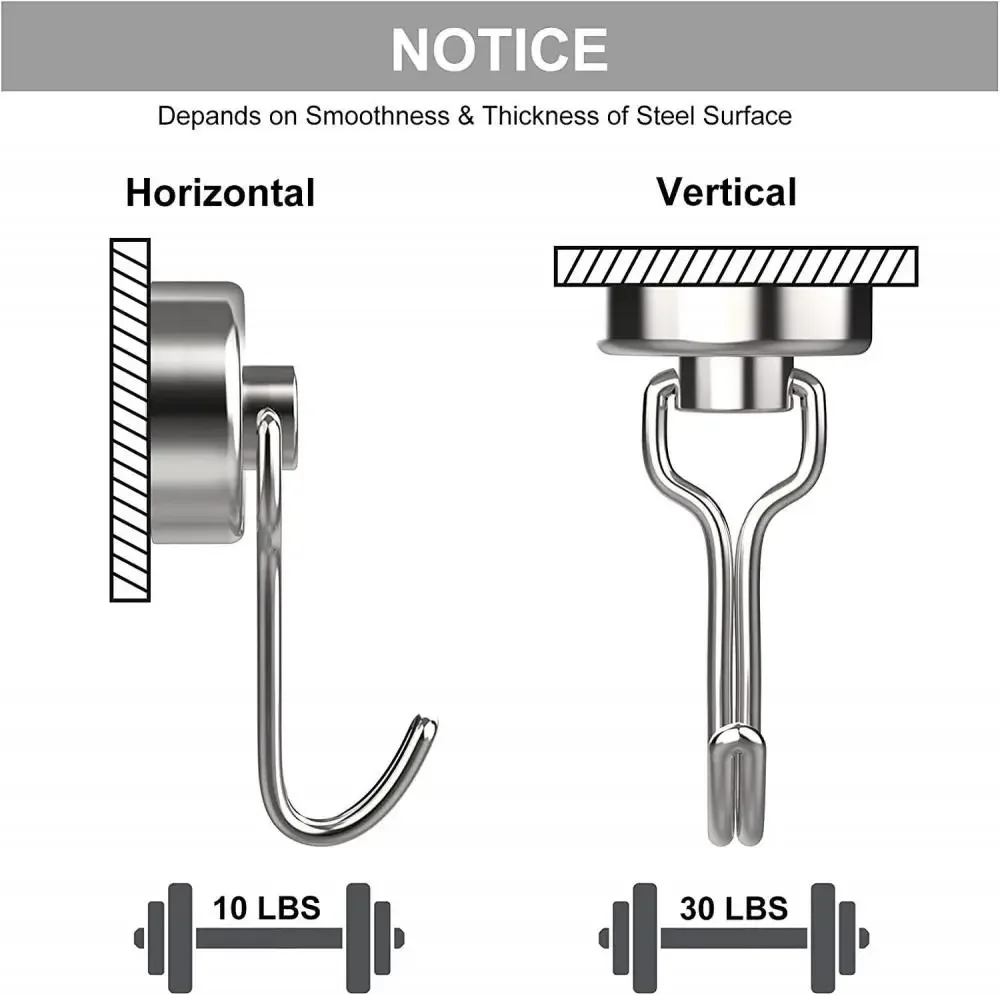 Gancho magnético multiusos resistente, fuertes ganchos magnéticos de neodimio para el hogar, refrigerador, parrilla, cocina, llavero