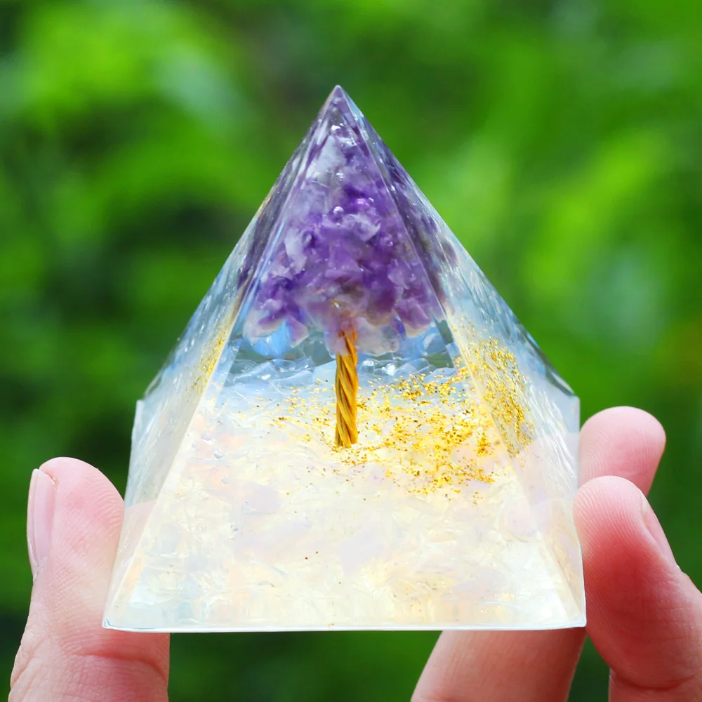 Cristales Piedra Orgone Pirámide Amatista Natural Peridoto Reiki Chakra Generador de energía Herramienta de meditación Decoración de la habitación Regalo de Navidad