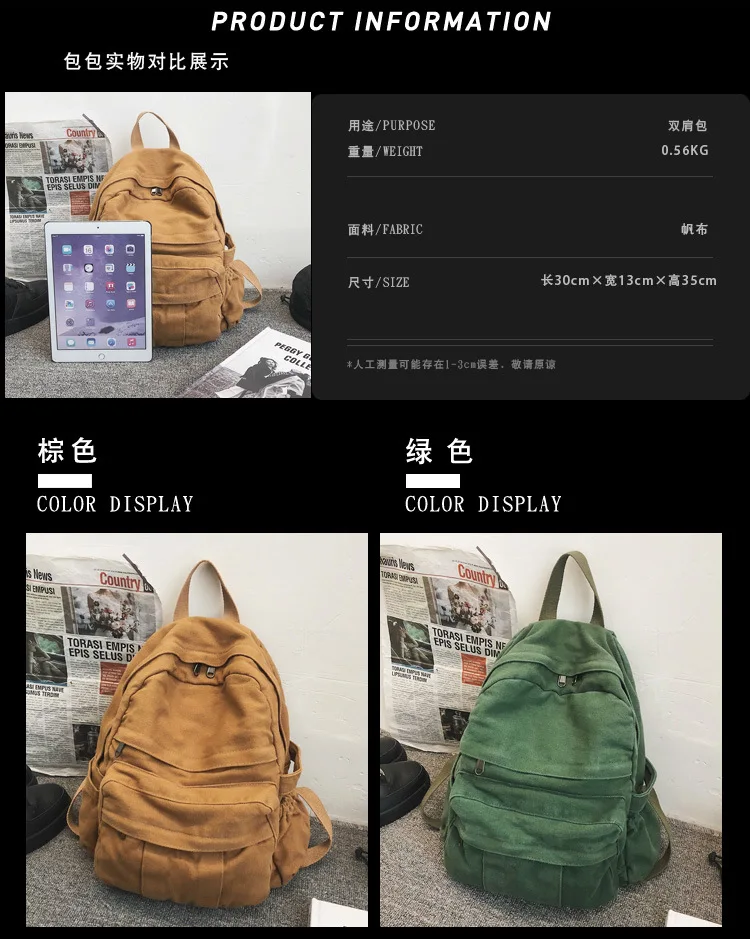 Girl Fabric School Bag New Fashion College Student Vintage Backpack Canvas Female Laptop Bag Travel Kawaii Backpack