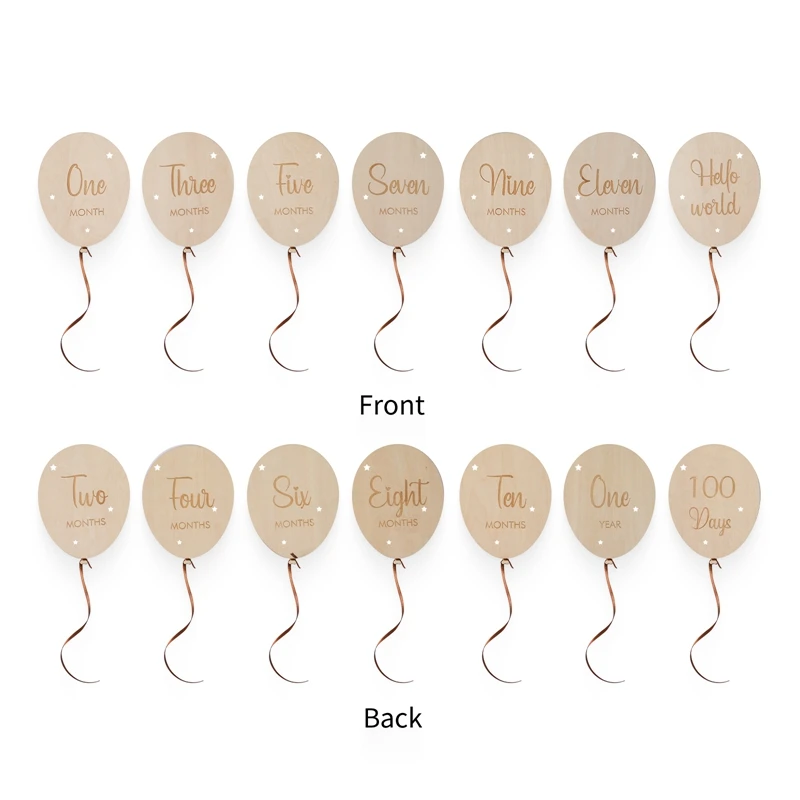 Globo de madera para recién nacidos de 7 piezas hito inglés 1-12 meses Tarjeta de madera bebé hito accesorios de fotografía decoración de fiesta de cumpleaños