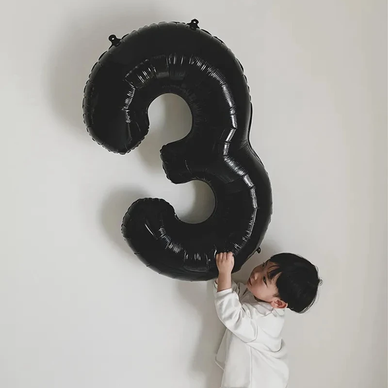 Globos gigantes con números negros para niños y adultos, globo de aluminio de helio Mylar, decoraciones para fiesta de feliz cumpleaños, decoración para Baby Shower